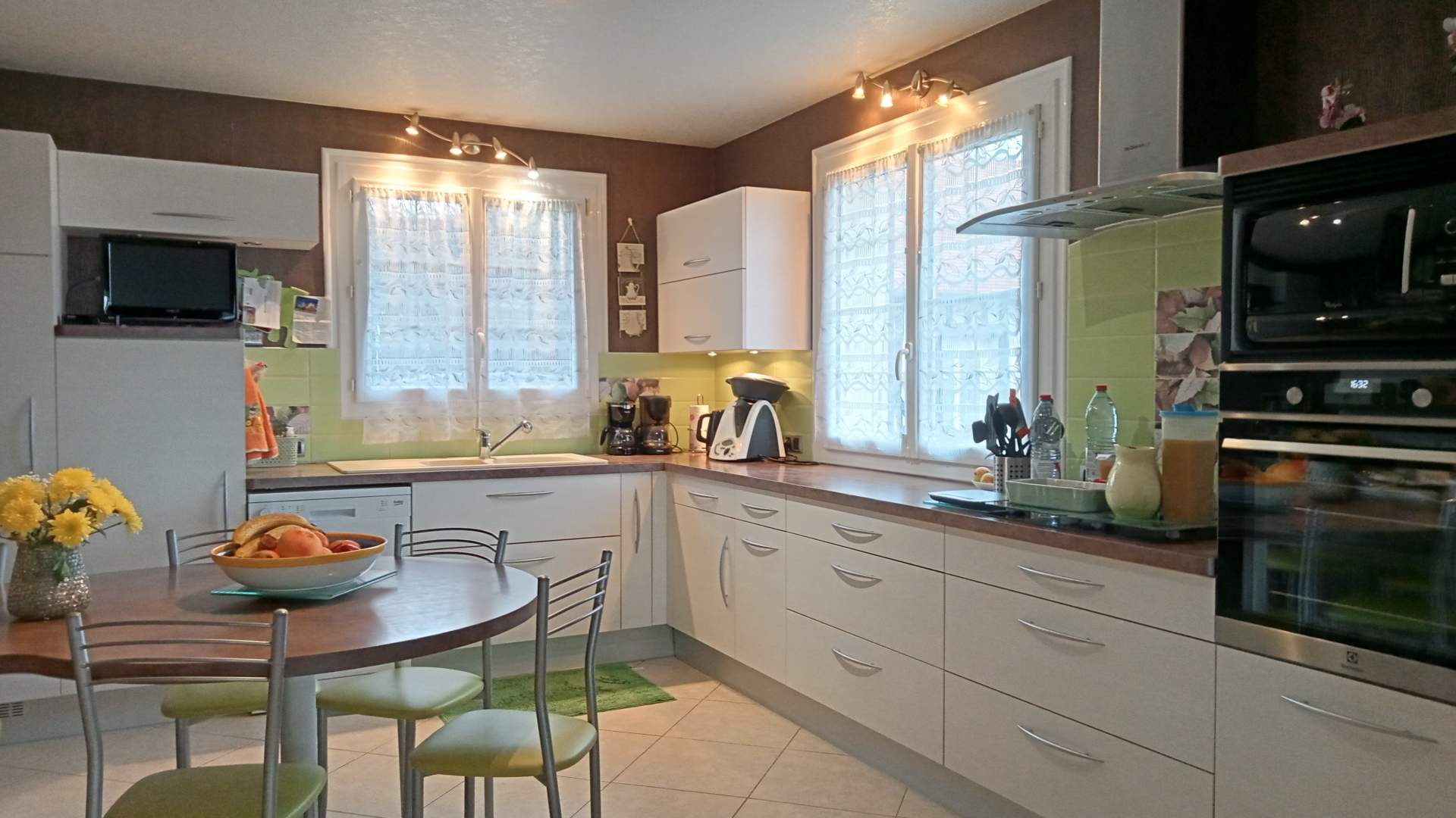 Rez de chaussée : entrée, cuisine aménagée et équipée, séjour salon avec cheminée insert, dégagement, 3 chambres dont une à usage de dressing, wc avec lave mains, salle de douche avec wc.