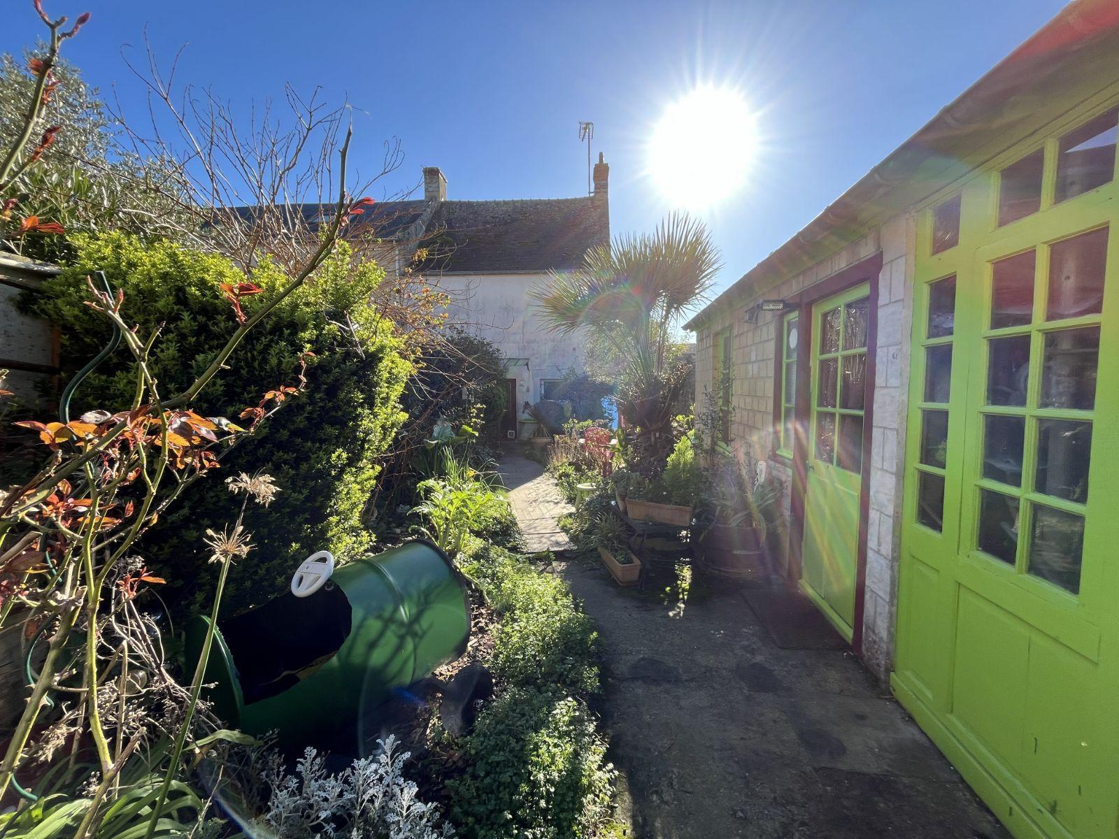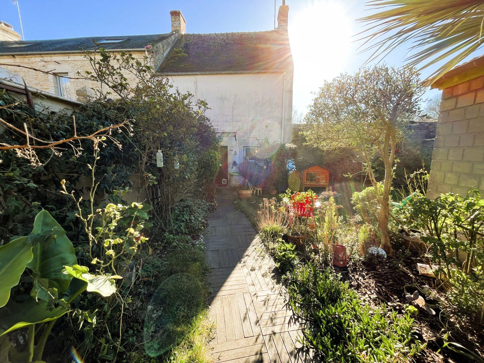 Jardin clos de murs avec le charme de la pierre de Caen, dépendance a usage d'atelier.