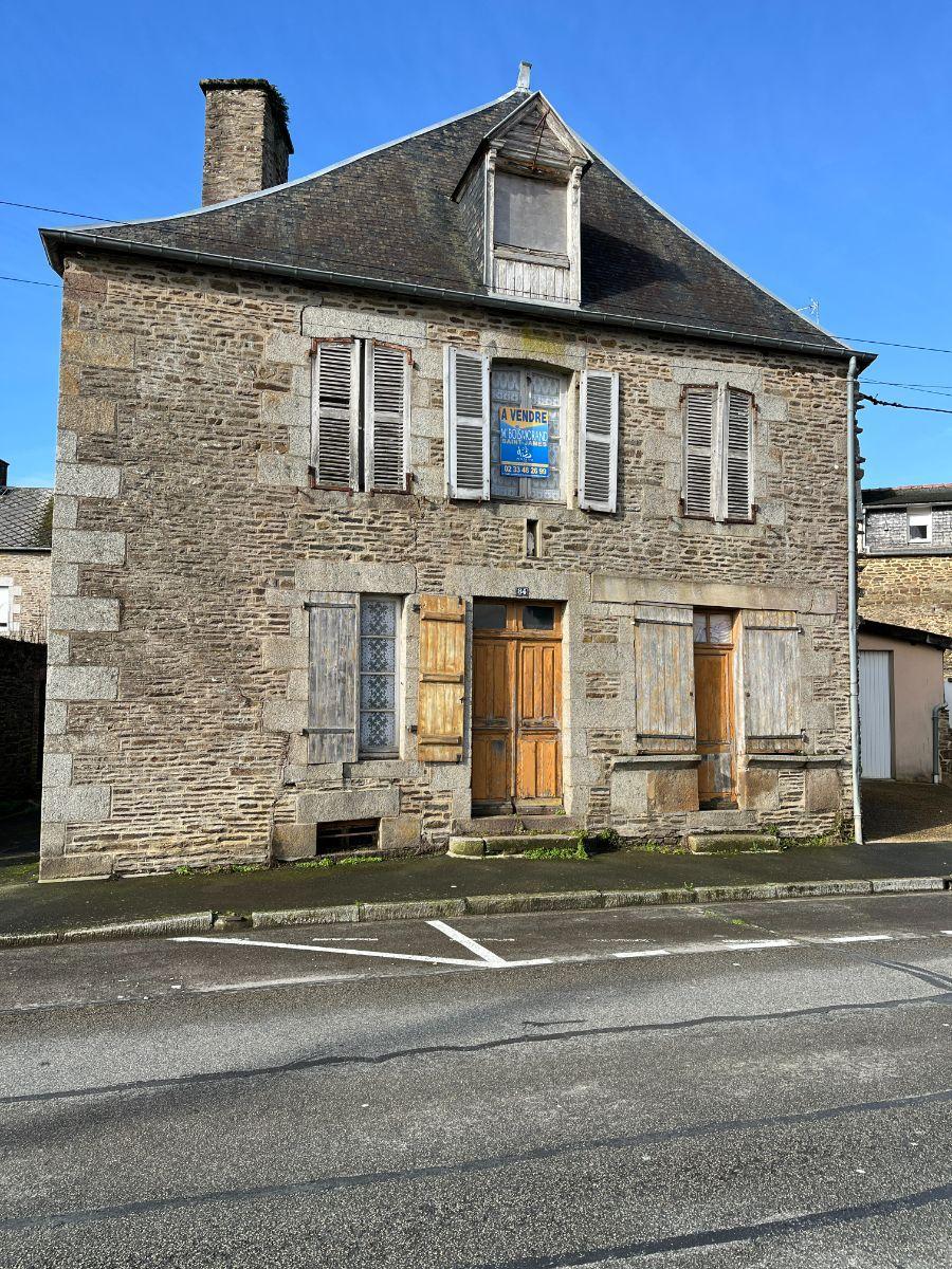 Maison de ville en pierres à rénover composée d'une pièce de vie avec cuisine, chambre, dégagement avec wc. A l'étage, palier, wc, salle d'eau et deux chambres. Grenier au-dessus et cave en sous-sol. Jardin non-attenant.
