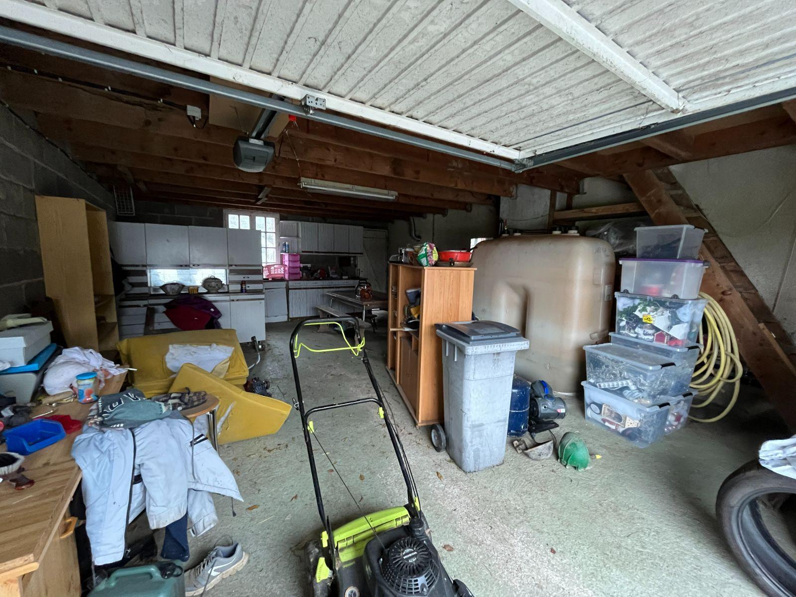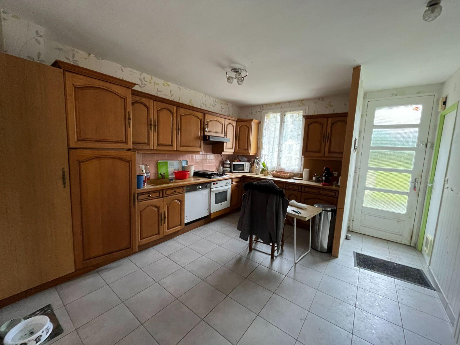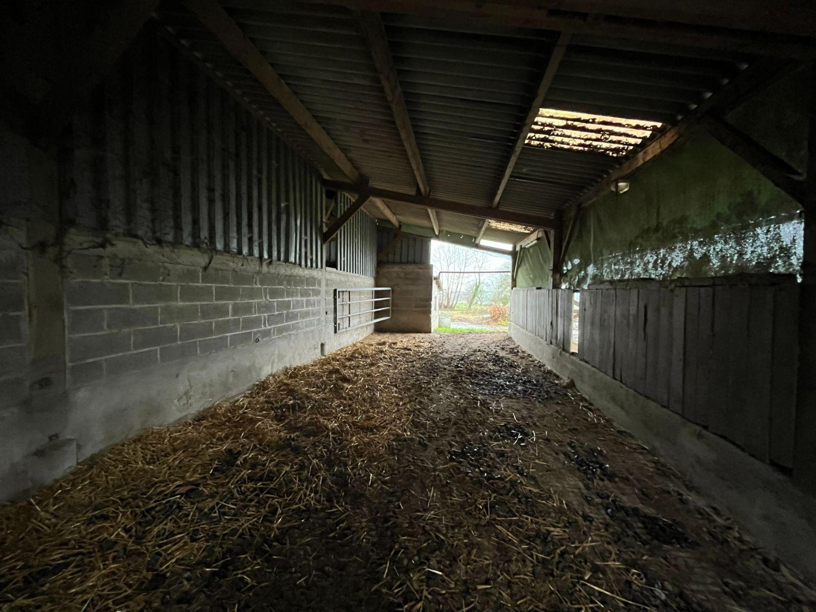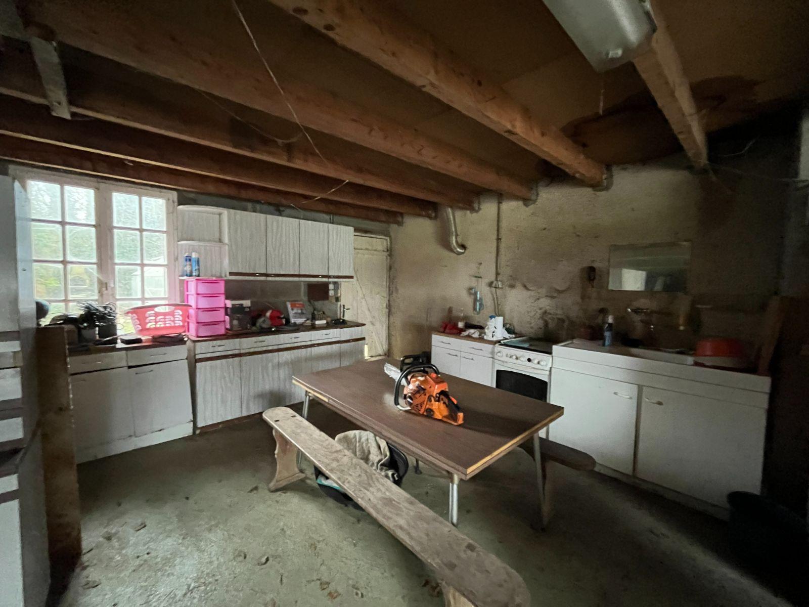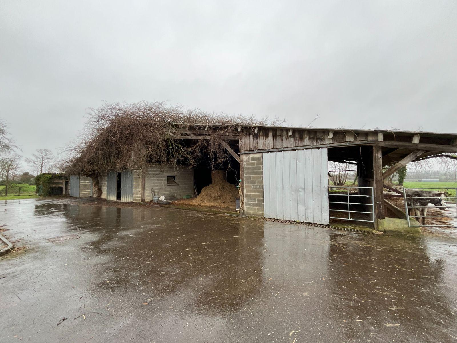 Maison contemporaine de plain pied composée d'une pièce de vie avec cheminée/insert et cuisine ouverte, dégagement distribuant trois chambres, salle d'eau avec wc, buanderie et débarras. Garage attenant avec chaufferie et grenier au dessus. Abri bois avec préaux attenant et cour close devant, allée goudronnée autour et hangar à foin avec atelier, étable, laiterie, soue et poulailler sur l'arrière. Jardin autour.