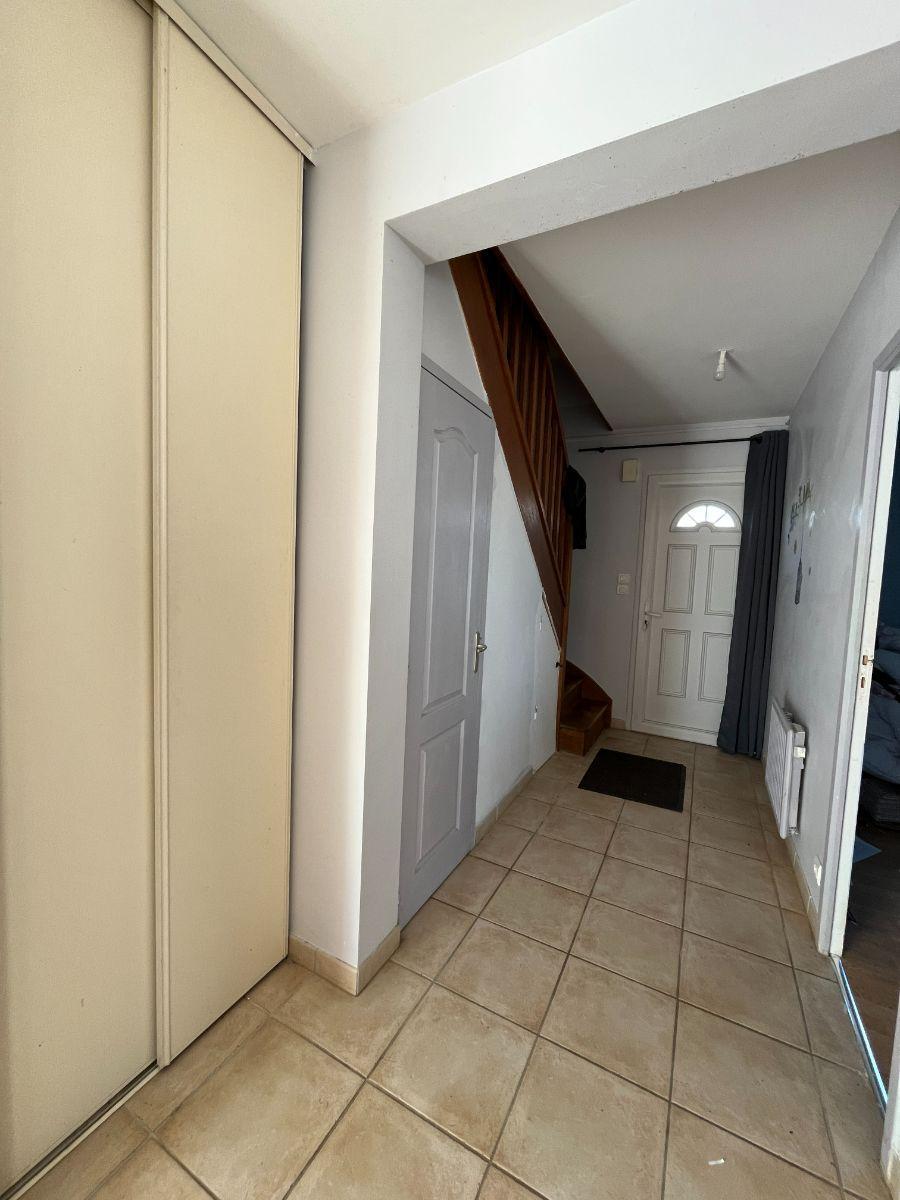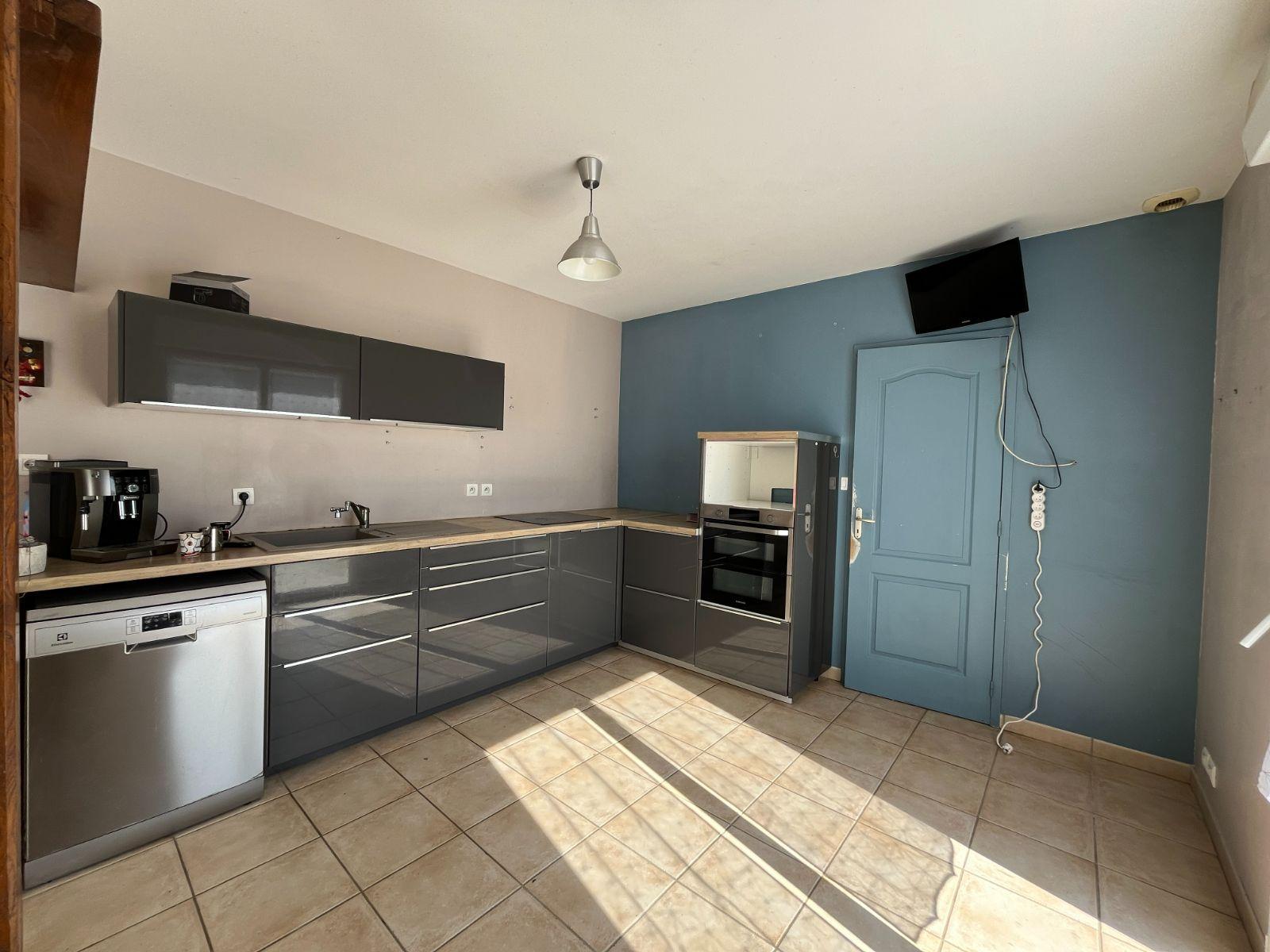Maison contemporaine composée d'une entrée avec placard, séjour avec cheminée/insert et poêle à granulés, cuisine aménagée, suite parentale avec salle d'eau, wc.