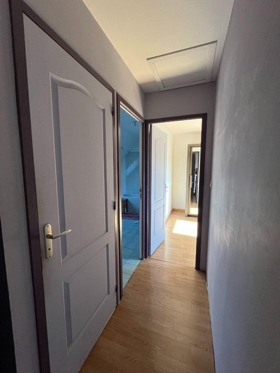 A l'étage : Le palier distribue trois chambres, une salle de bains et wc.