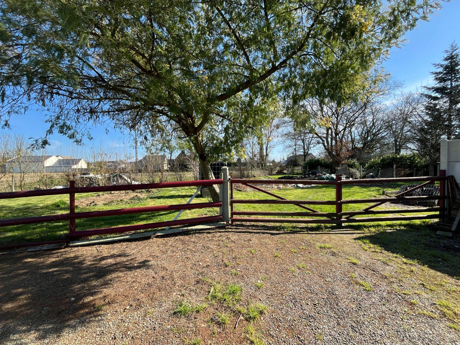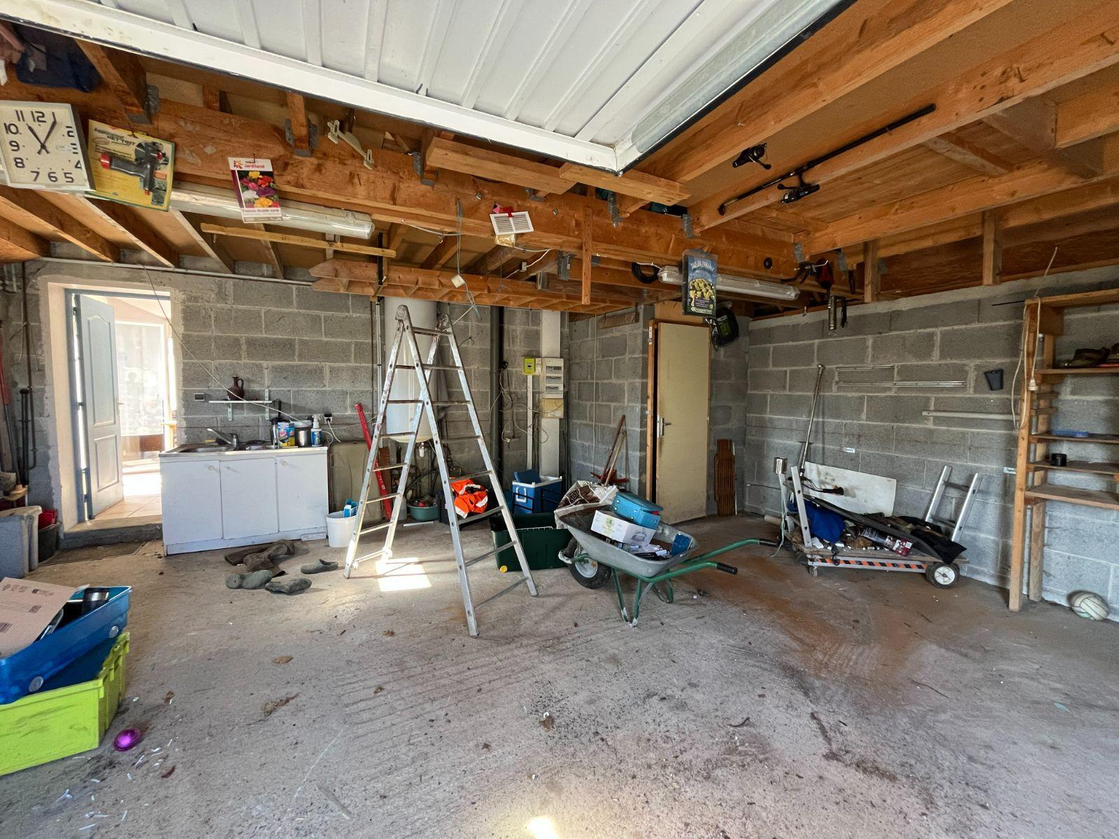 Garage double attenant avec cave et buanderie, grenier au dessus, cour de stationnement, jardin clos avec terrasse et potager.
