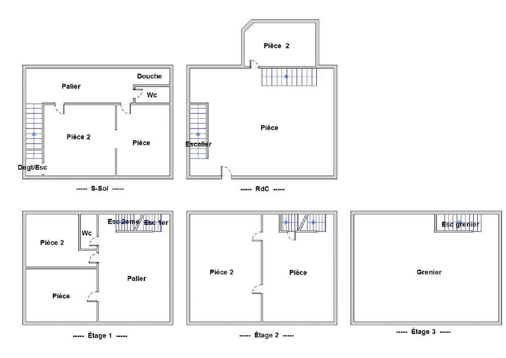 -Sous-sol : dégagement, wc, douche, deux pièces.