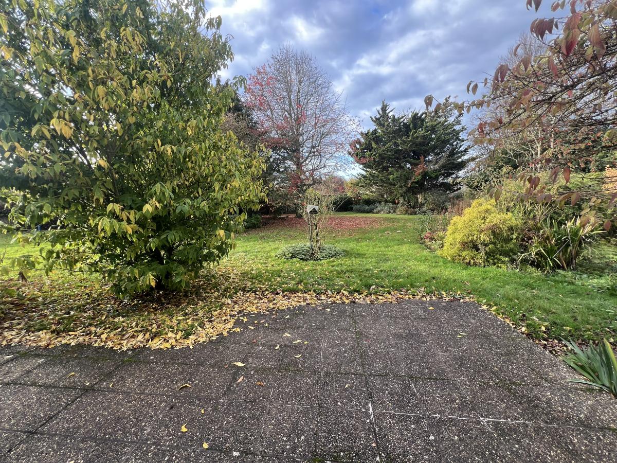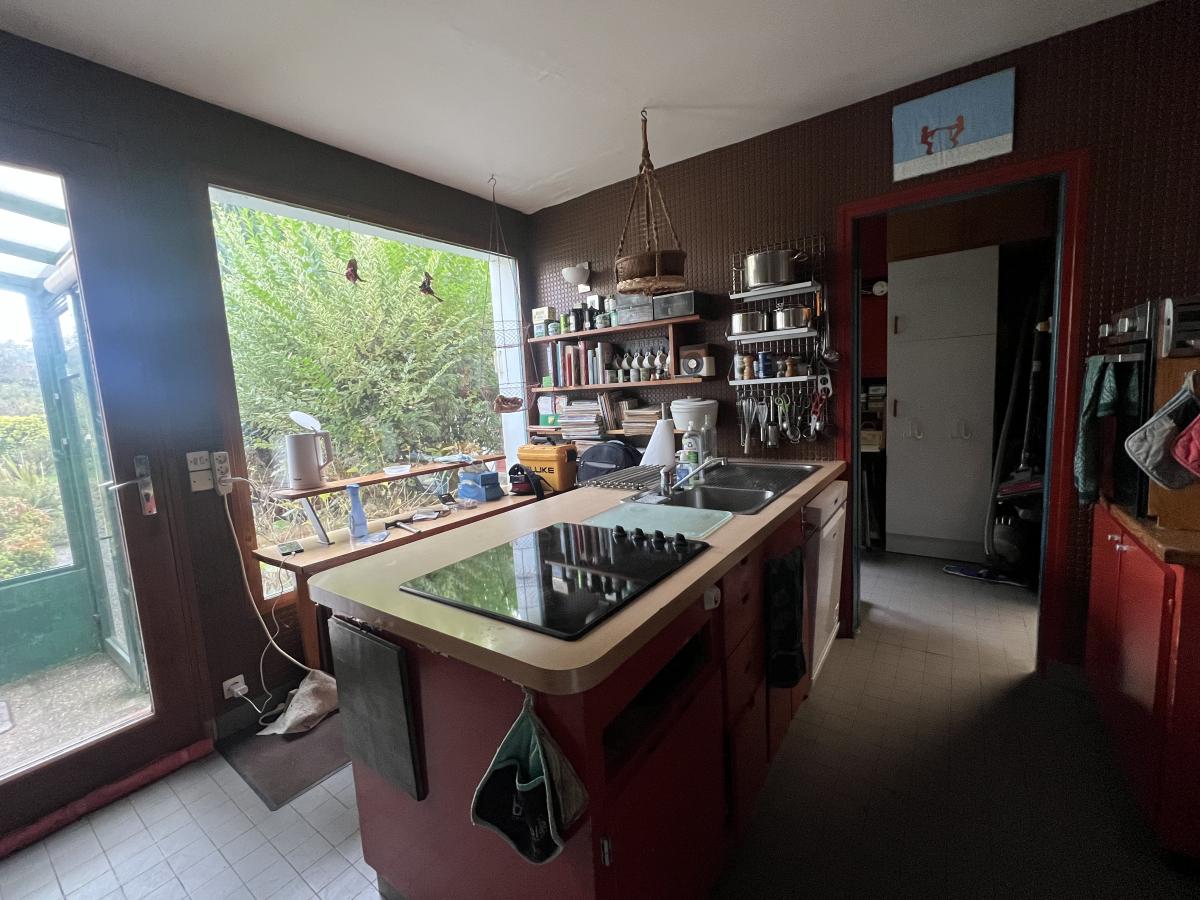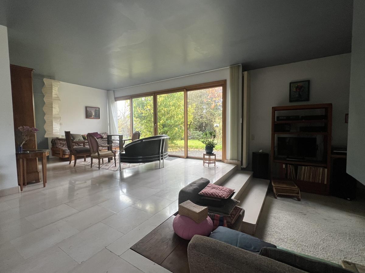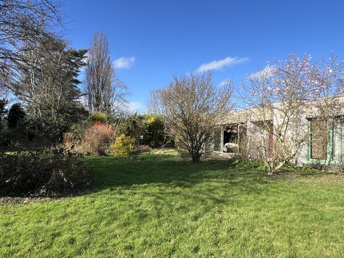 BIEVILLE BEUVILLE - CAEN nord bus de ville - HORS LOTISSEMENT - Atypique maison d'architecte de plain pied de 166 m2, comprenant entrée, séjour salon avec cheminée 46 m2, cuisine, 5 chambres dont une avec salle de bains, 2 salles d'eau, bureau, arrière cuisine, wc. Garage attenant de 40 m2. Double garage en annexe. Terrain 3800 m2. Travaux à prévoir. DPE : F