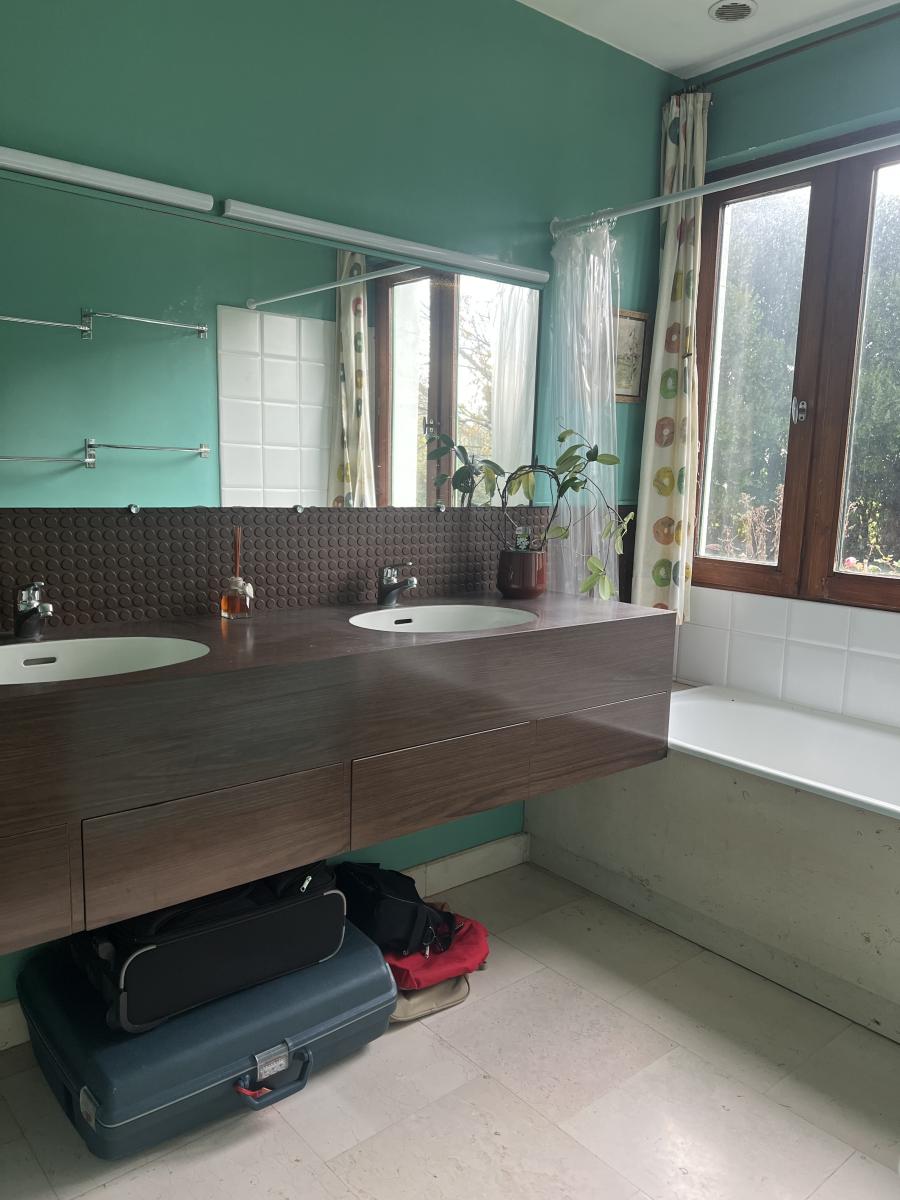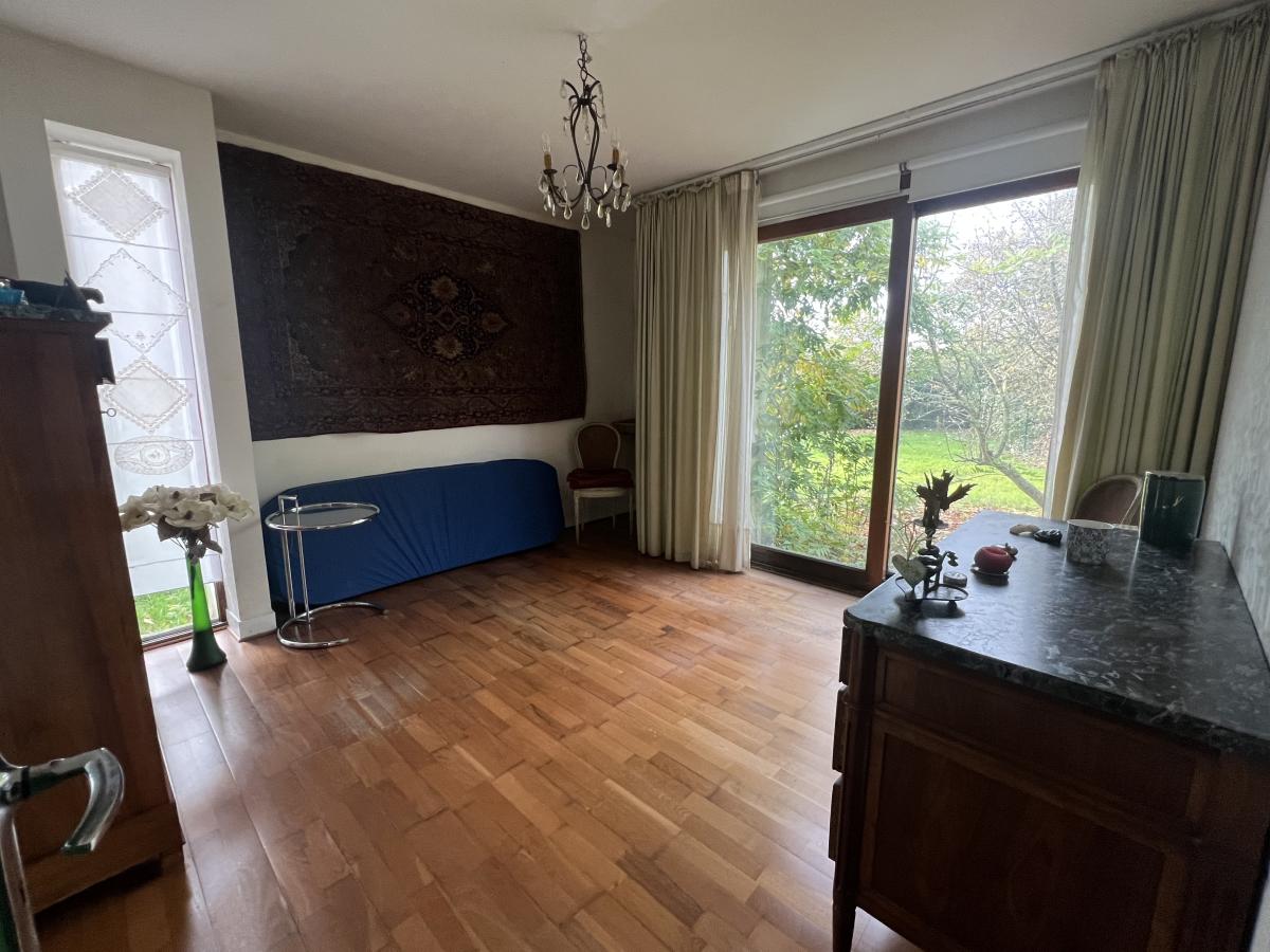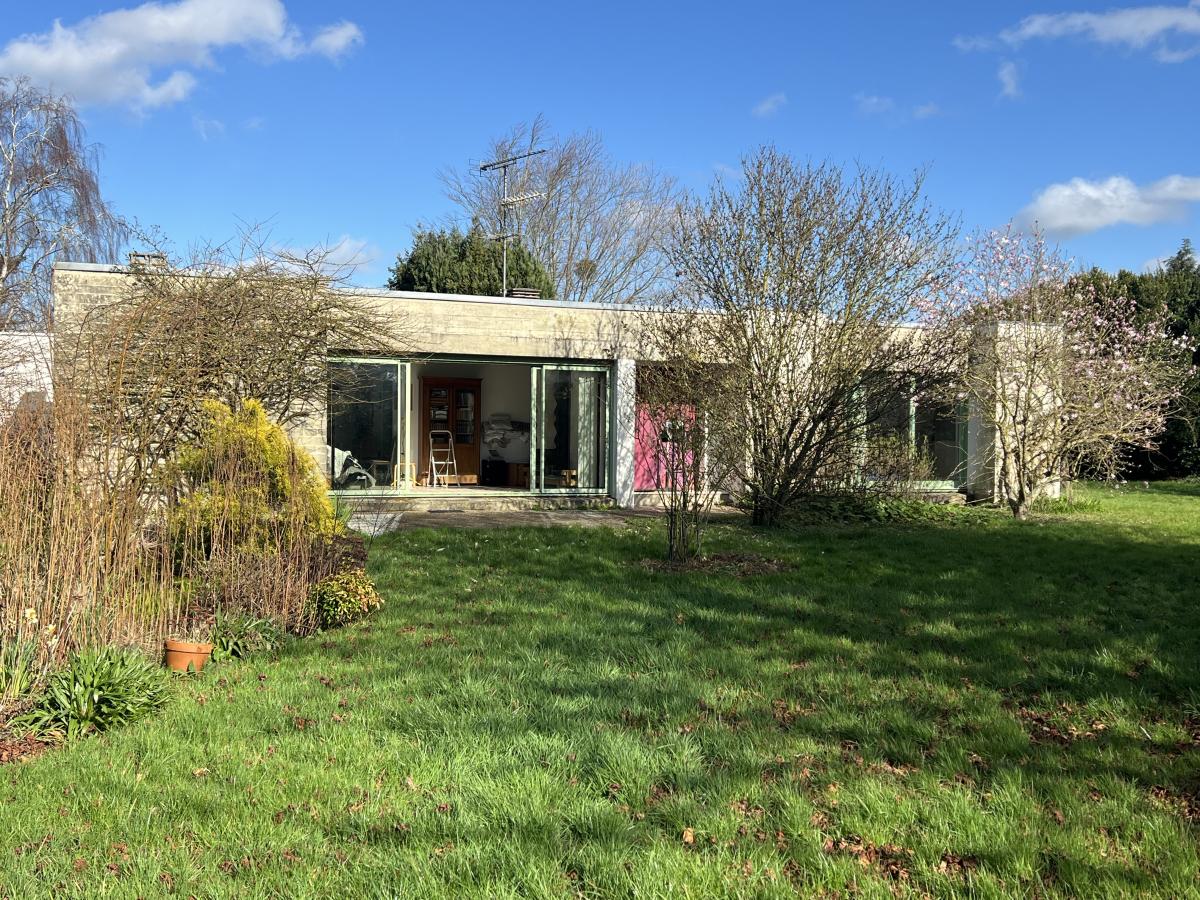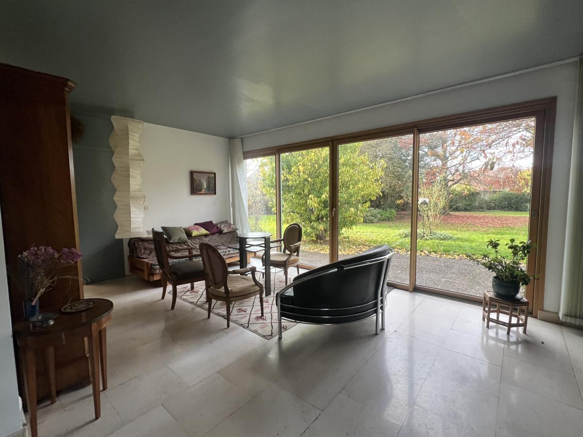 BIEVILLE BEUVILLE - CAEN nord bus de ville - HORS LOTISSEMENT - Atypique maison d'architecte de plain pied de 166 m2, comprenant entrée, séjour salon avec cheminée 46 m2, cuisine, 5 chambres dont une avec salle de bains, 2 salles d'eau, bureau, arrière cuisine, wc. Garage attenant de 40 m2. Double garage en annexe. Terrain 3800 m2. Travaux à prévoir. DPE : F