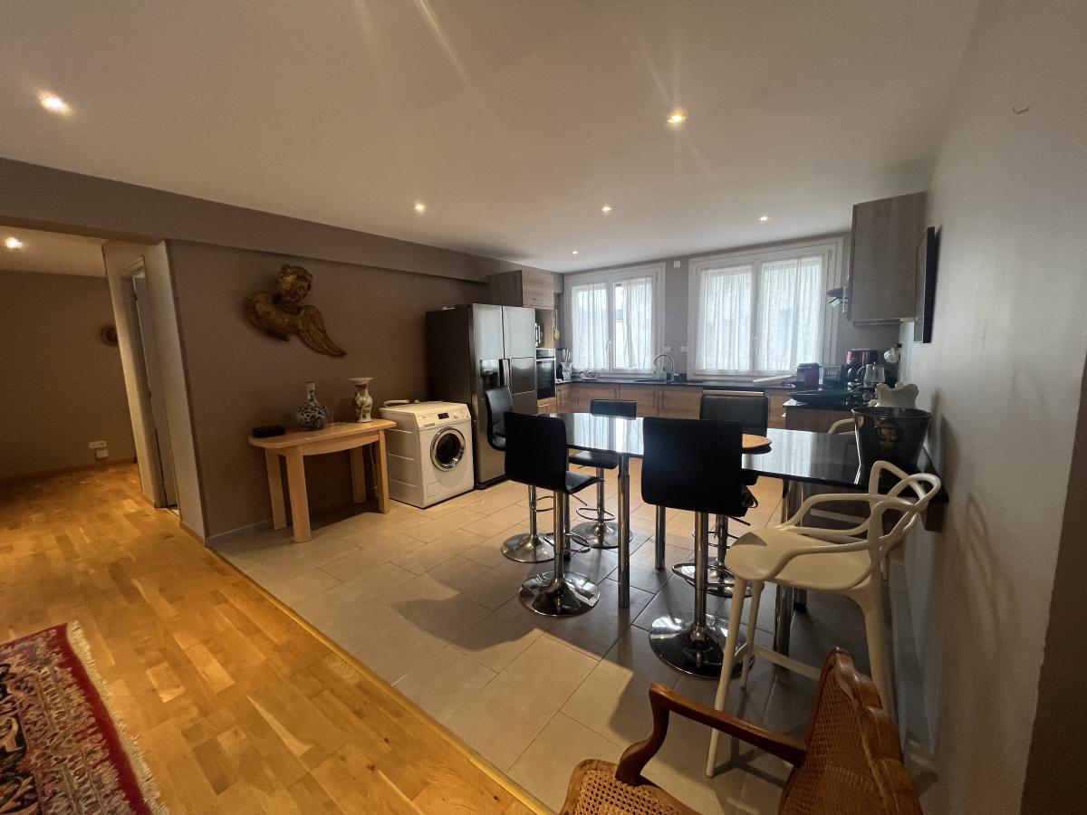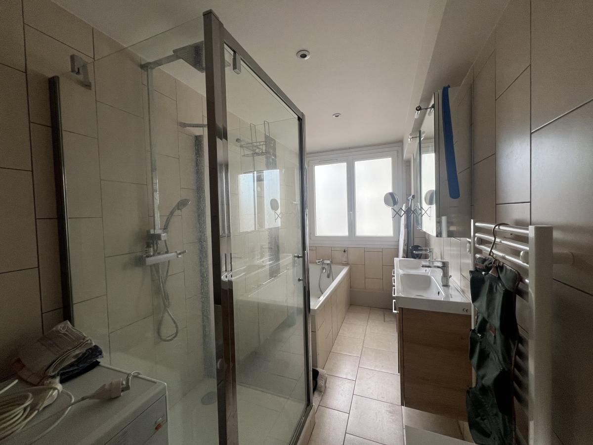 CAEN proche centre et port de plaisance, beau 5 pièces de 108 m2, dans résidence au calme avec ascenseur, comprenant entrée avec placards, cuisine aménagée ouverte sur séjour salon, 3 chambres dont 2 avec dressing ou bureau, salle de bains avec douche, wc avec lave mains. Parking extérieur privatif dans la résidence. Charges collectives gaz. 300 euros/mois, incluant chauffage, eau chaude et froide, entretien des communs... Très bon état général. DPE : D