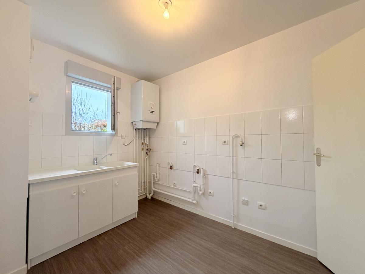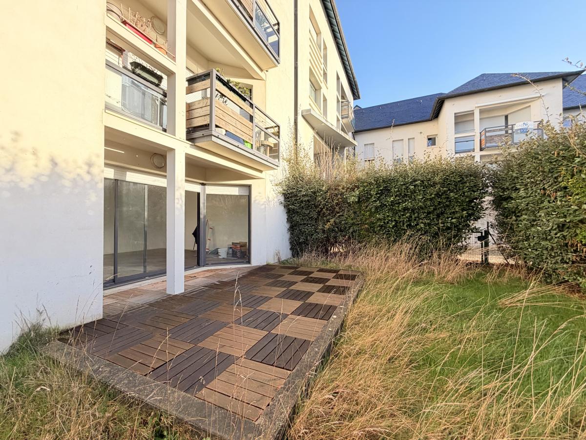 Centre ville de Douvres, dans un immeuble récent, appartement F3 de 82 m² situé en rez-de-jardin, comprenant entrée avec placard, cuisine, séjour-salon avec accès jardin privatif, dégagement, wc, dressing, salle de bains, deux chambres. Une cave. Deux parkings.