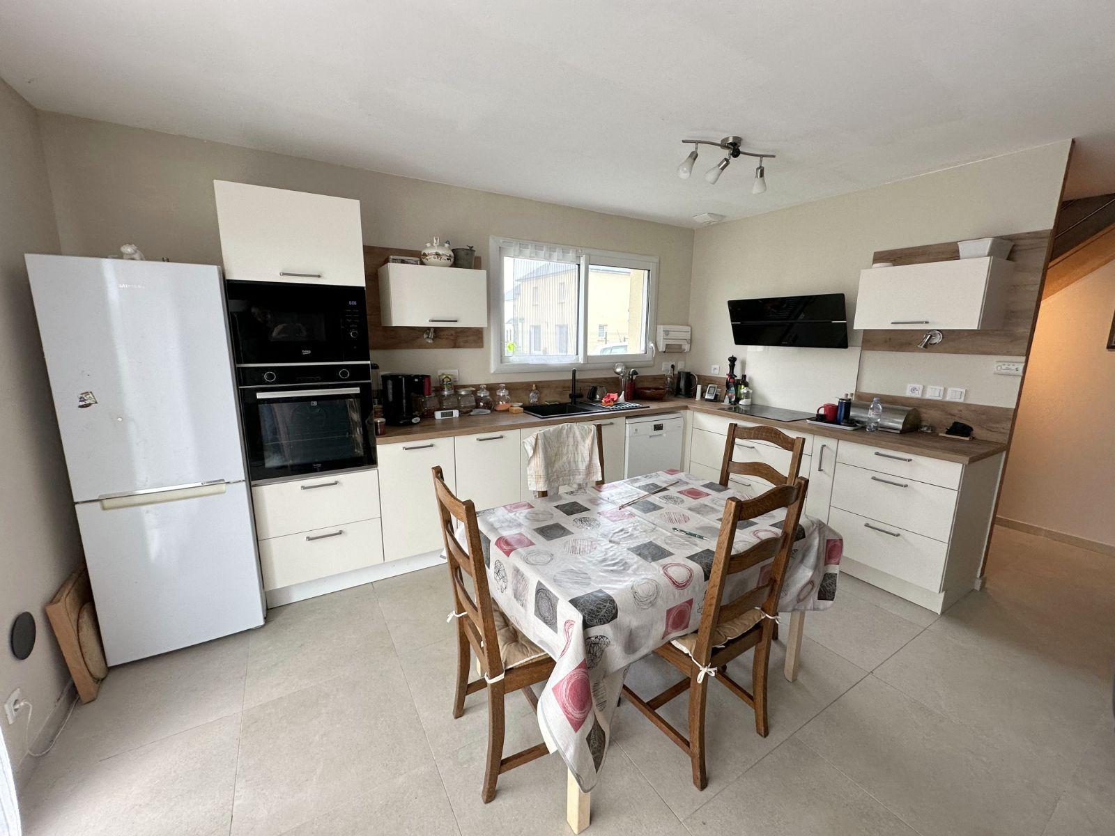 Maison neuve de type F4 en très bon état comprenant une entrée donnant accès à une belle pièce de vie exposée sud-ouest avec cuisine équipée ouverte, arrière-cuisine avec espace buanderie, une chambre avec placard et salle d'eau et un WC indépendant. A l'étage, palier desservant deux belles chambres, une grande salle d'eau et un WC indépendant. Garage attenant avec pièce au dessus. Le tout sur un terrain clos d'environ 457 m² avec terrasse. Les informations sur les risques auxquels ce bien est exposé sont disponibles sur le site Géorisques : www.georisques.gouv.fr