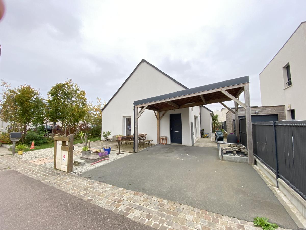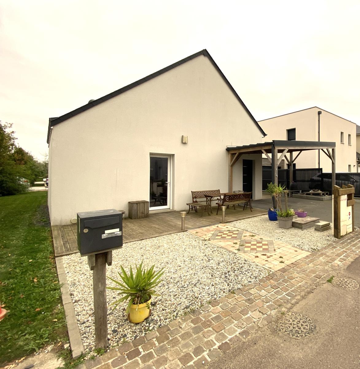 MAISON DE PLAIN-PIED de 2018 COMPOSEE D'UNE ENTREE DANS SEJOUR SALON ET CUISINE OUVERTE AMENAGEE, CELLIER, WC, TROIS CHAMBRES ET DEUX SALLES D'EAU.