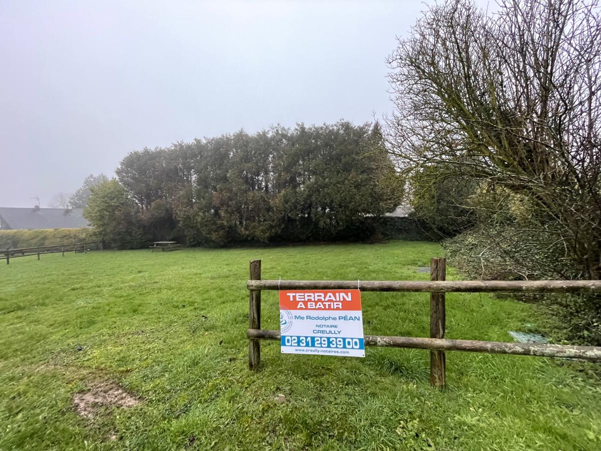 RUCQUEVILLE, à environ 5 mn de Creully, dans une rue calme, agréable terrain à bâtir HORS LOTISSEMENT d'environ 703 m² vendu semi viabilisé (coffrets eau et EDF installés). Prévoir assainissement individuel.