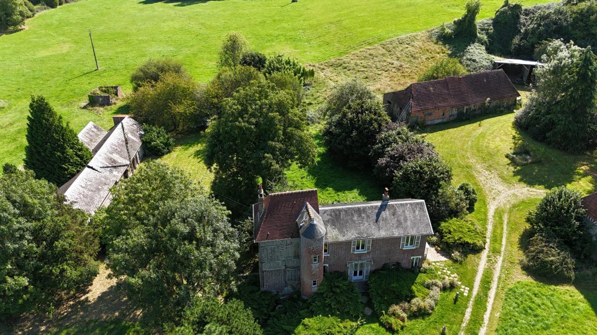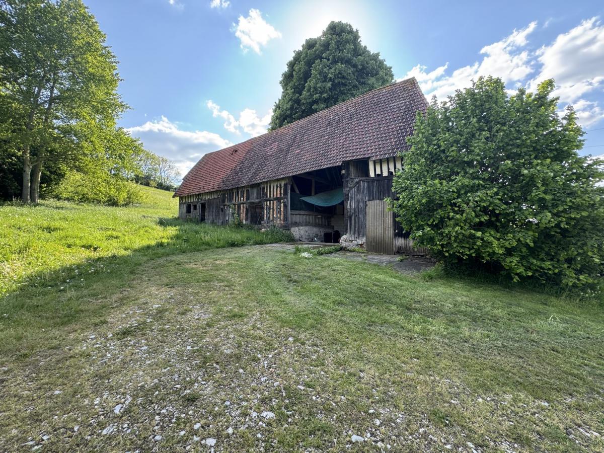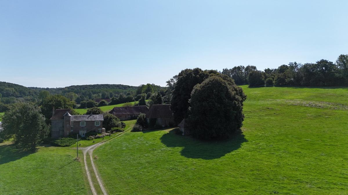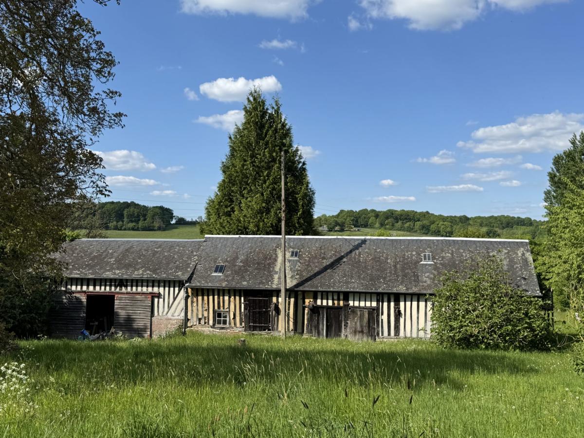 LIVAROT PAYS D'AUGE secteur FERVAQUES avec commerces et école Ferme augeronne Parfaitement au calme Très bel environnement, ensemble avec 9,5ha de prairies et bâtiments :   Maison ancienne en briques et colombages à restaurer d'environ 160m²: RDC: cuisine, salle à manger (33m²), salon (26m²) et wc. 1er: couloir, 4 chambres, salle de bains et wc. 2nd: chambre et grenier.    Non soumis à DPE Anciennes fromagerie, grange, étable. Hangars métalliques Mare avec source