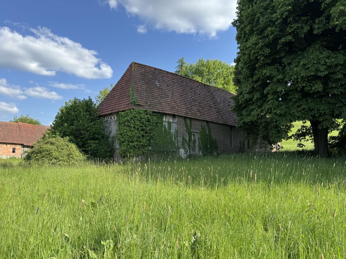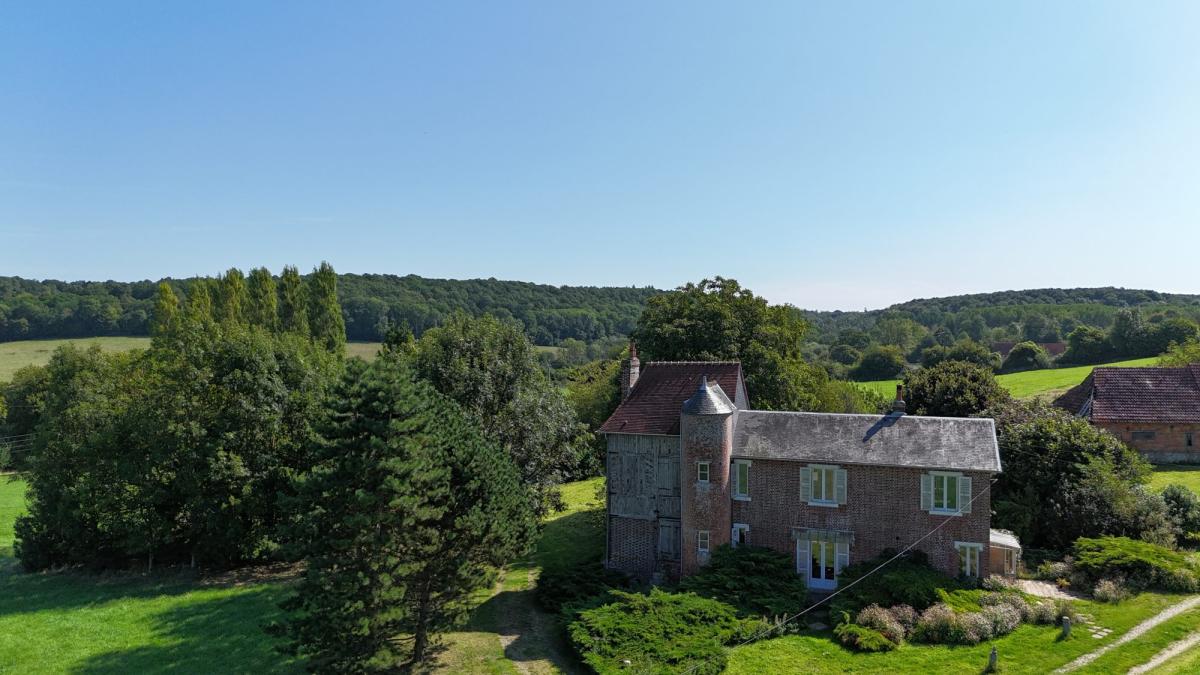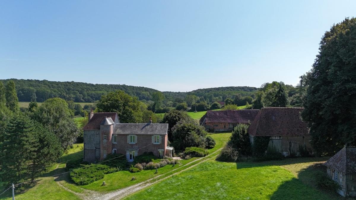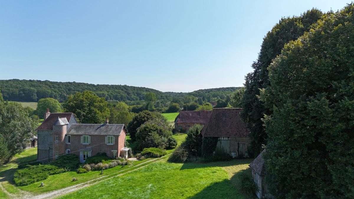 LIVAROT PAYS D'AUGE secteur FERVAQUES avec commerces et école Ferme augeronne Parfaitement au calme Très bel environnement, ensemble avec 9,5ha de prairies et bâtiments :   Maison ancienne en briques et colombages à restaurer d'environ 160m²: RDC: cuisine, salle à manger (33m²), salon (26m²) et wc. 1er: couloir, 4 chambres, salle de bains et wc. 2nd: chambre et grenier.    Non soumis à DPE Anciennes fromagerie, grange, étable. Hangars métalliques Mare avec source