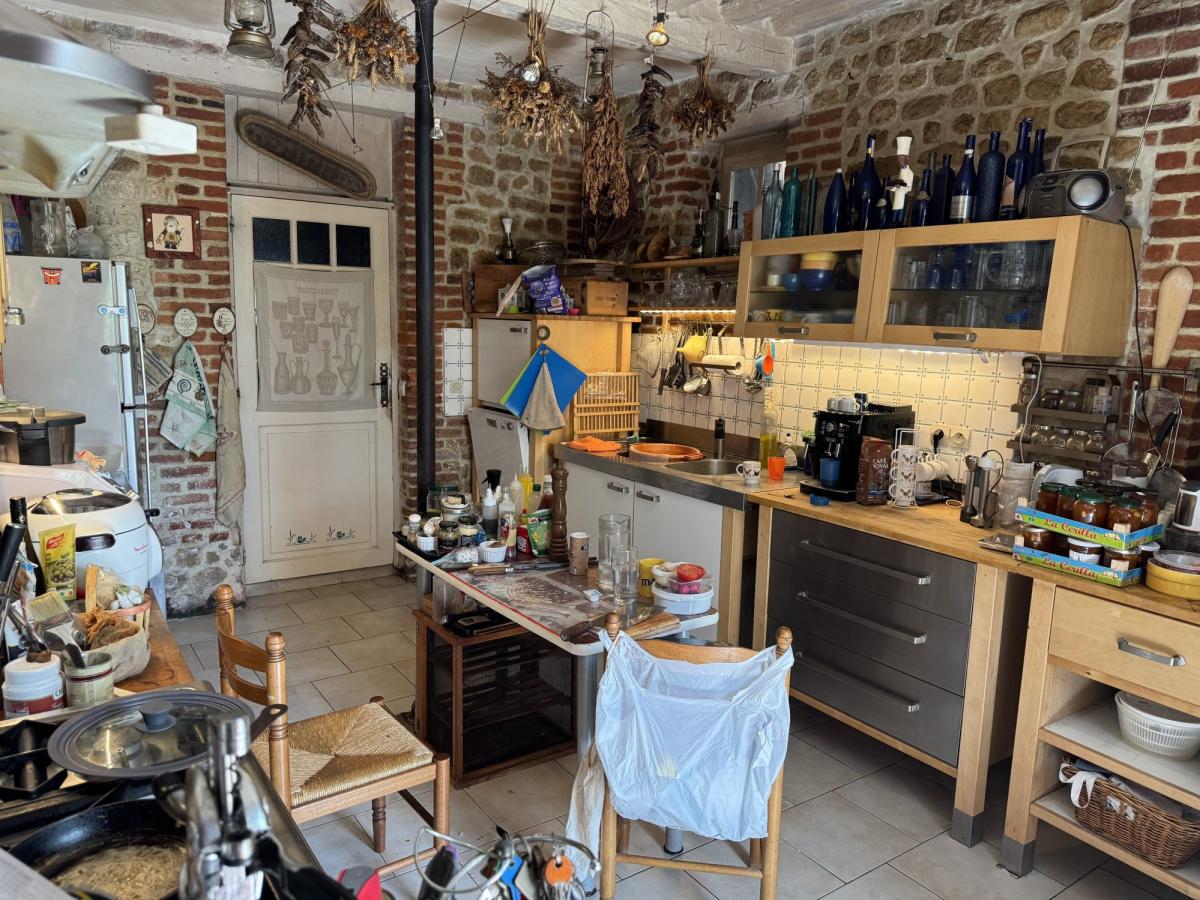 RDC: séjour, cuisine, chambre, salle d'eau et wc.