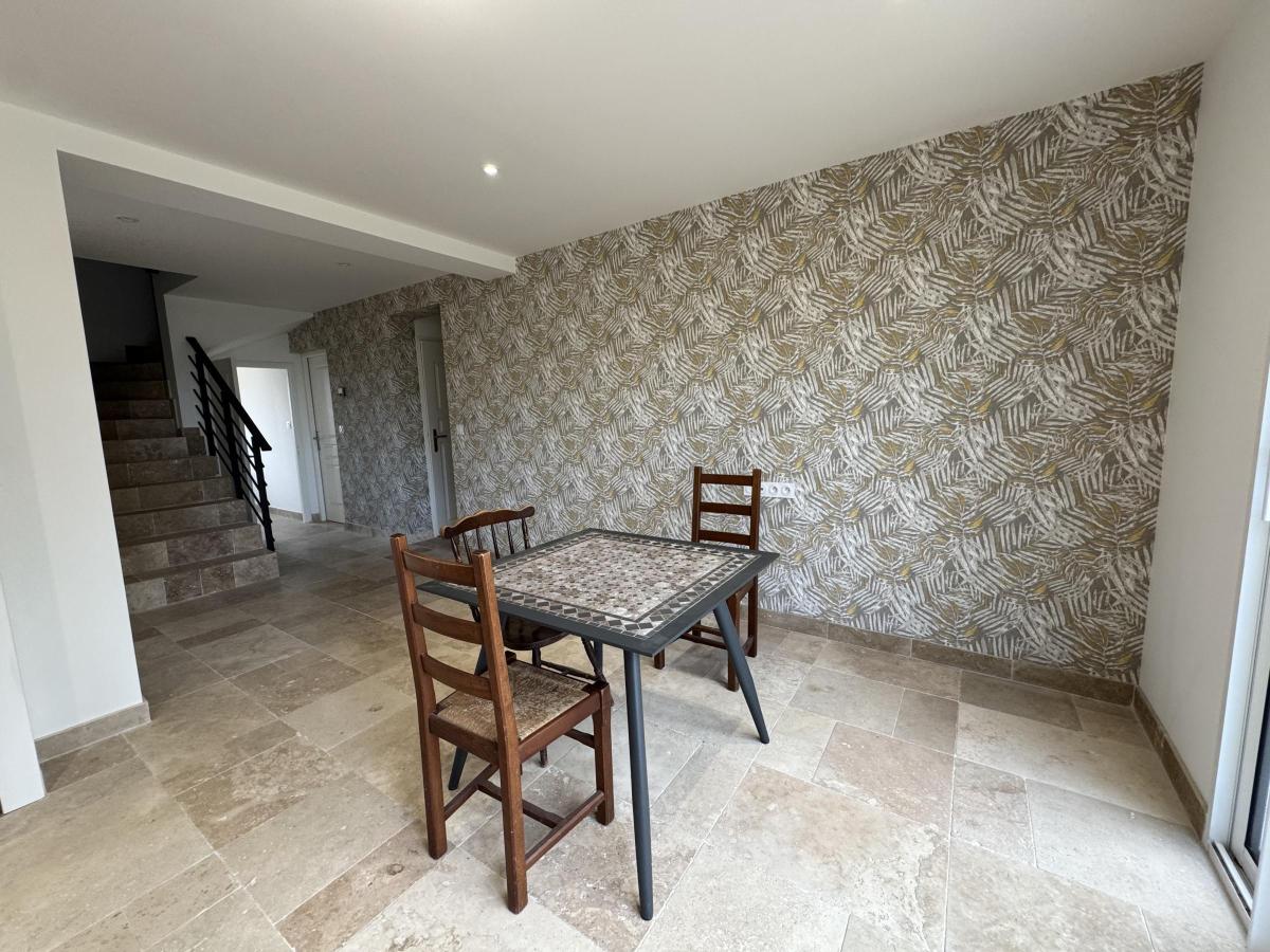 Au RDC: pièce de vie avec cuisine aménagée ouverte (51m², possibilité cheminée), chambre de 14m², salle d'eau, wc et garage