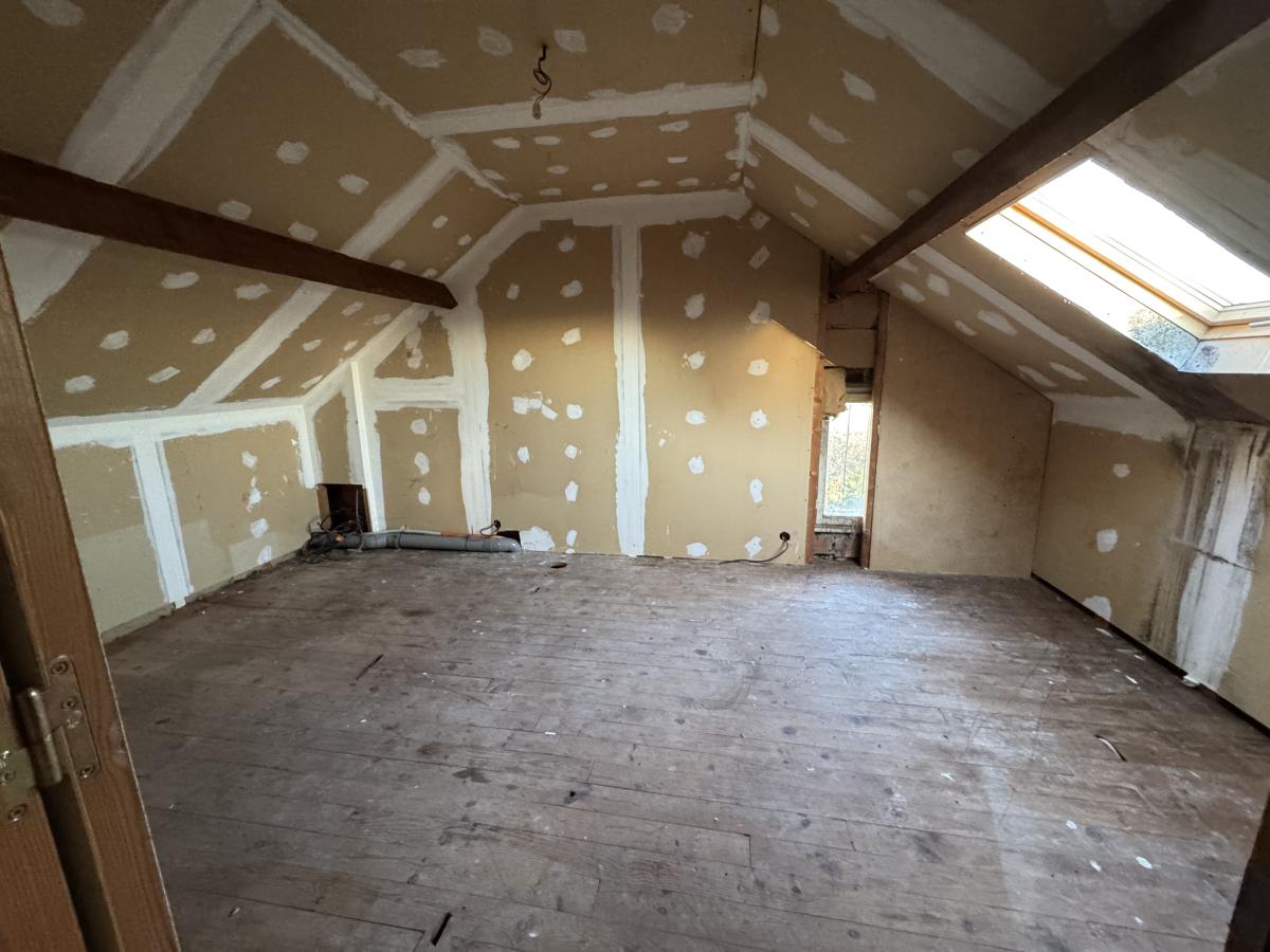VIEUX BOURG Maison avec terrain de 2.100m², comprenant: Entrée, cuisine, séjour-salon avec terrasse, couloir, 2 chambres, salle d'eau, wc. Grenier aménageable Abris et car-port double