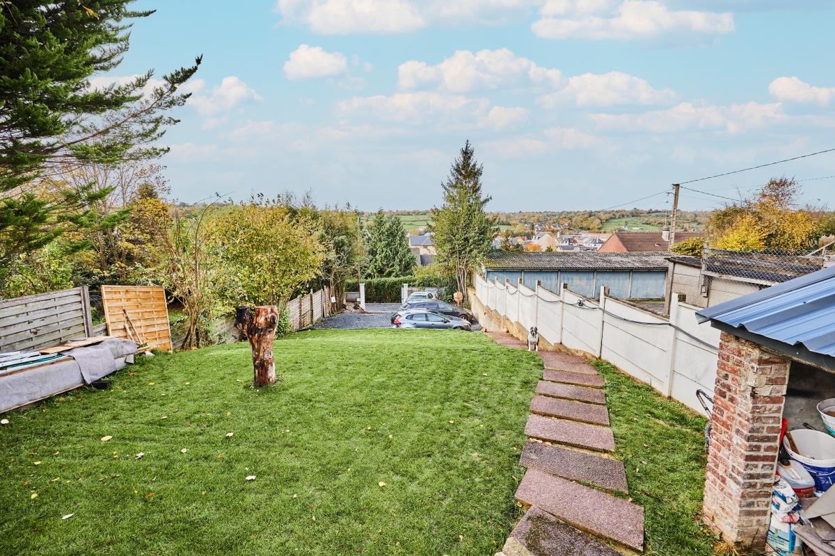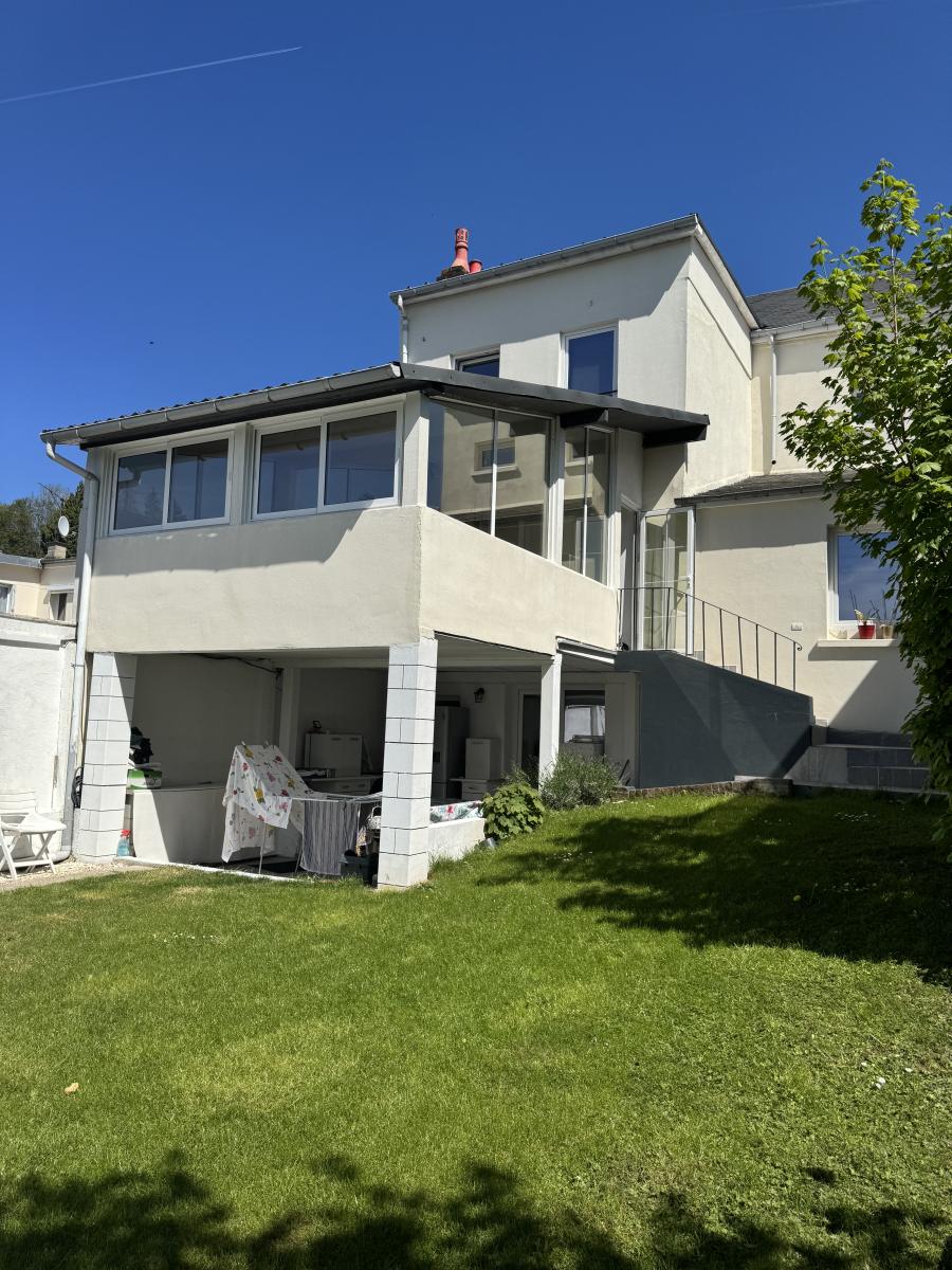 LISIEUX Maison rénovée récemment d'environ 140m²: RDC: séjour, cuisine aménagée, véranda, chambre, bureau et salle d'eau avec wc. A l'étage: palier, 3 chambres et salle de bains avec wc. Grenier aménageable au-dessus. Cave aménagée en sous-sol. 2 garages indépendants Terrain de 500m²