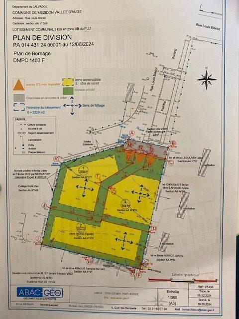 MEZIDON VALLEE D'AUGE, MEZIDON CANON, commerces, écoles et gare SNCF, parcelle de terrain à bâtir d'une superficie de 636 m² viabilisée.