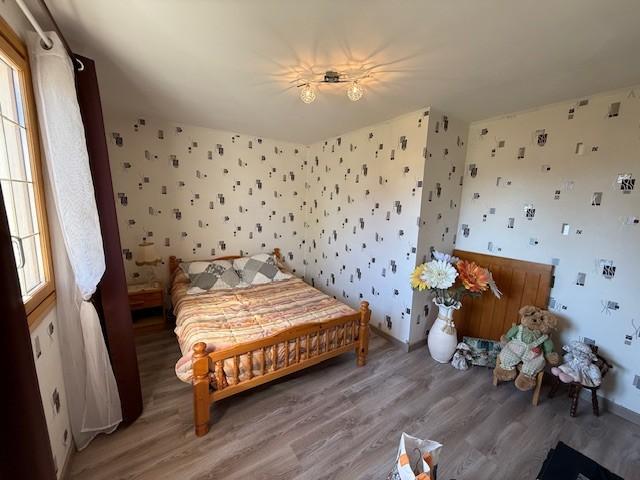 - Entrée avec placards, cuisine aménagée et équipée avec coin repas, chauffage électrique, salle-salon avec cheminée, 3 chambres.