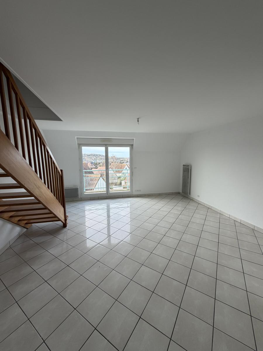 Situé au sein de la résidence sécurisée le Domaine du Royal Panoramique, avenue Charles de Gaulle, au dernier étage avec ascenseur, ce duplex de 75 m² loi Carrez (90 m² au sol) offre une organisation idéale et une belle luminosité.