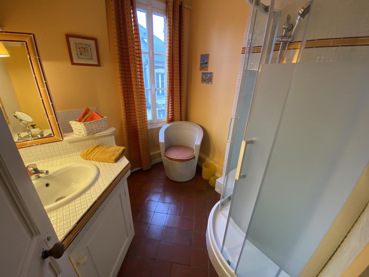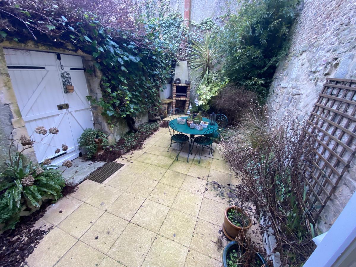 BAYEUX, emplacement idéal, maison de 128m² comprenant, entrée, salon avec cheminée, séjour, cuisine aménagée et équipée, buanderie, wc. Au premier étage, chambre avec son dressing, salle de bains. Au dernier étage, deux chambres, salle d'eau avec wc. Grenier au dessus. Cour avec terrasse.