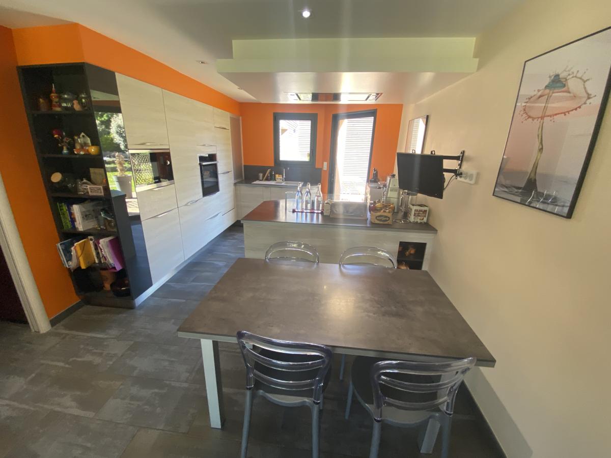Maison contemporaine de 154m² au calme comprenant, entrée, salon/séjour, cuisine aménagée et équipée ouverte sur le séjour, un bureau avec placards, 3 chambres dont deux avec dressing, salle d'eau avec WC, arrière cuisine, WC. A l'étage, combles à finir d'emménager (possibilité de faire deux chambres et une salle de bains). Belle terrasse plein sud, quart port pour deux voitures, abri de jardin. Terrain de 1125m².