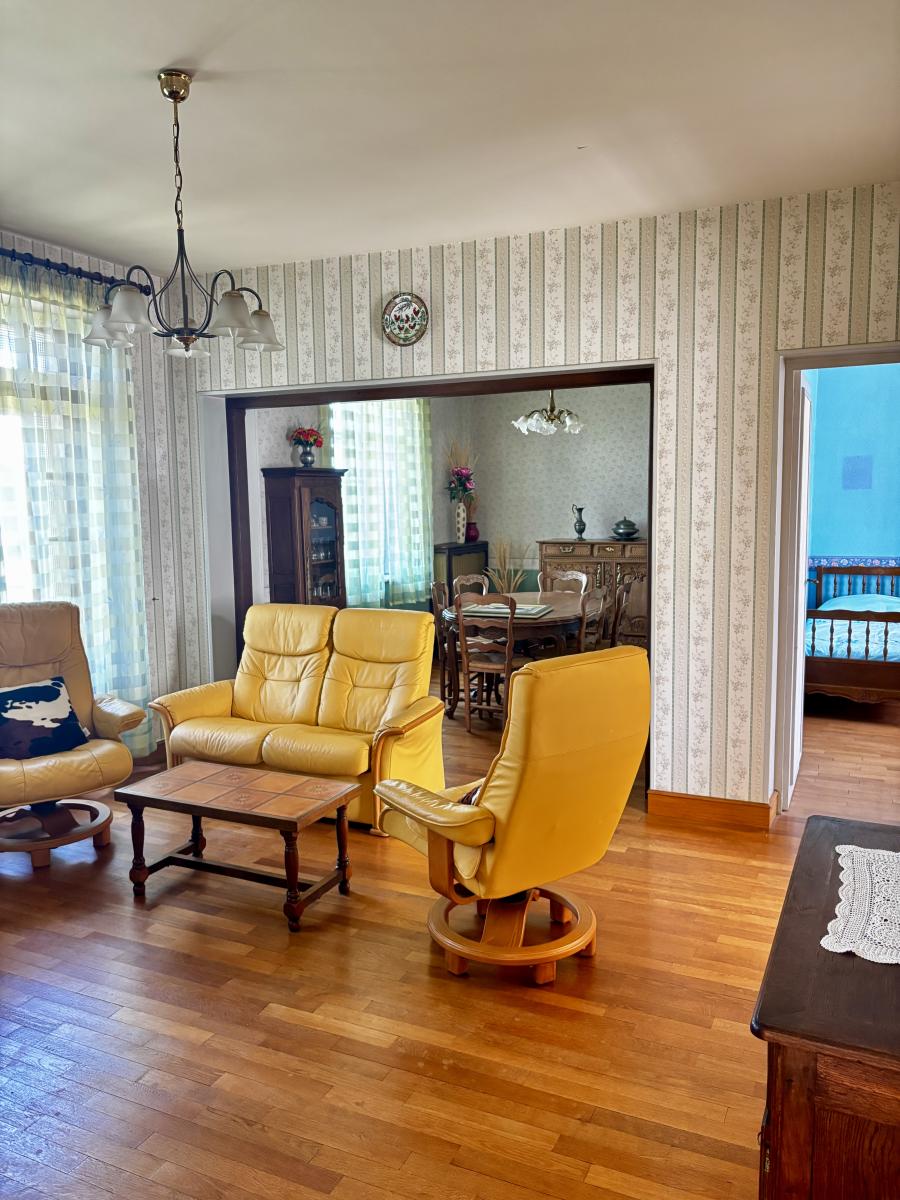 - Au rez-de-chaussée : une entrée, un séjour lumineux avec espace salle à manger, une cuisine aménagée et équipée, deux chambres, une salle de bains et des WC séparés.