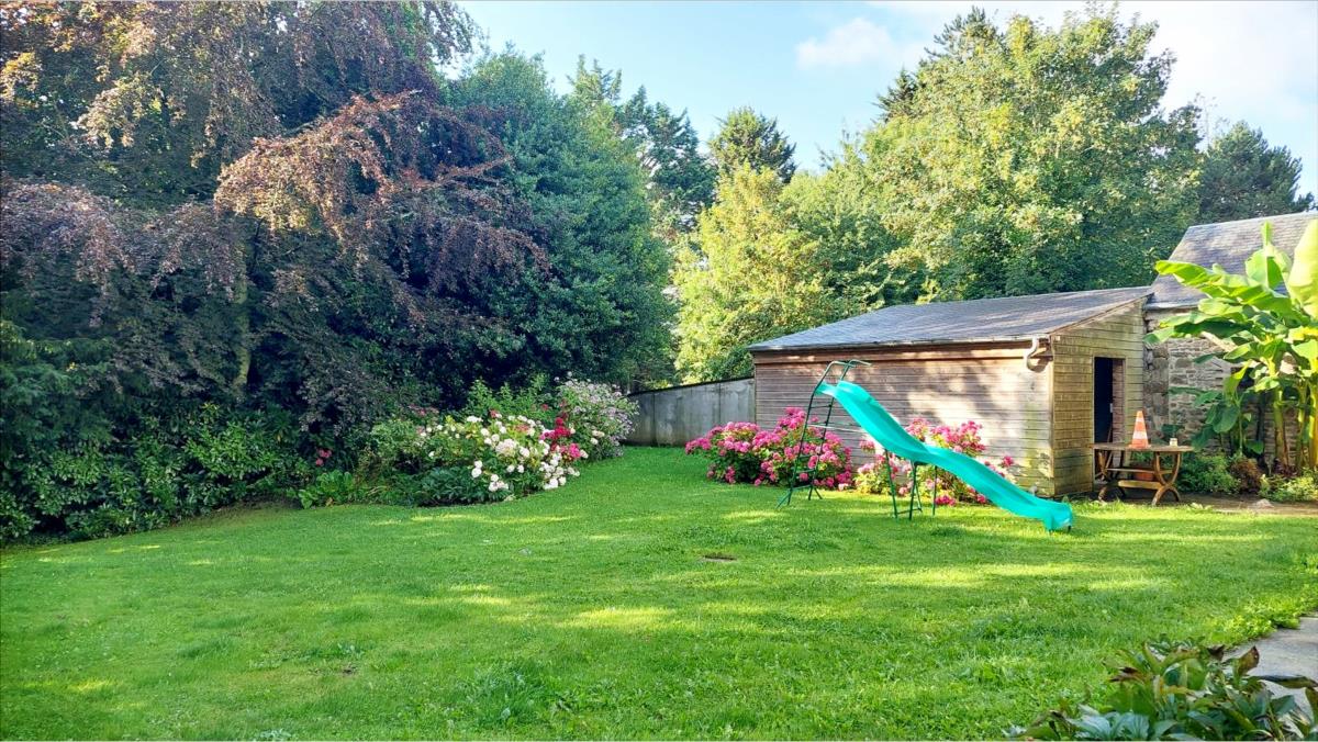 Cour devant pour stationnement. Terrasse sur l'arrière bordée par des petites dépendances. Beau parc arboré à la suite avec un accès indépendant pour véhicules et stationnement.