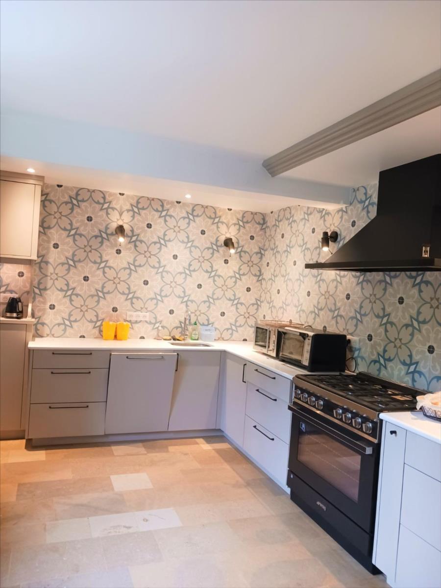 Au rez-de-chaussée : entrée, deux salons, salle à manger avec cheminée, cuisine entièrement aménagée et équipée, belle salle de réception (58 m²) avec cheminée ouverte et un agréable espace bar-salon sous verrière (42 m²). Il y a également des WC et une chaufferie-buanderie.