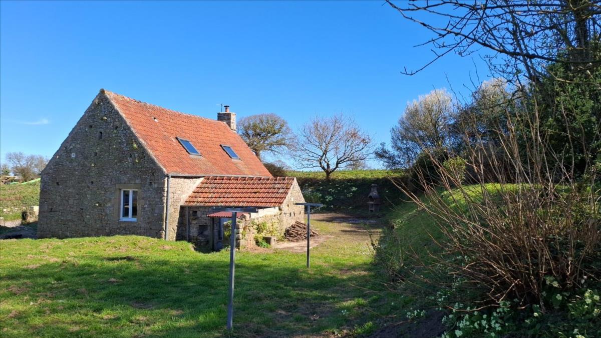 A 10 minutes de la mer et des commerces, à 20 minutes de Cherbourg, Maison en pierre, couverte en tuile, avec une autonomie de plain-pied, comprenant . Au rez-de-chaussée : une pièce de vie avec espace cuisine, cheminée -insert, dégagement avec chambre et salle d'eau, wc.. A l'étage : grande pièce mezzanine, une chambre.Diverses dépendances.Jardin.Le tout pour une surface cadastrale de 1283m².