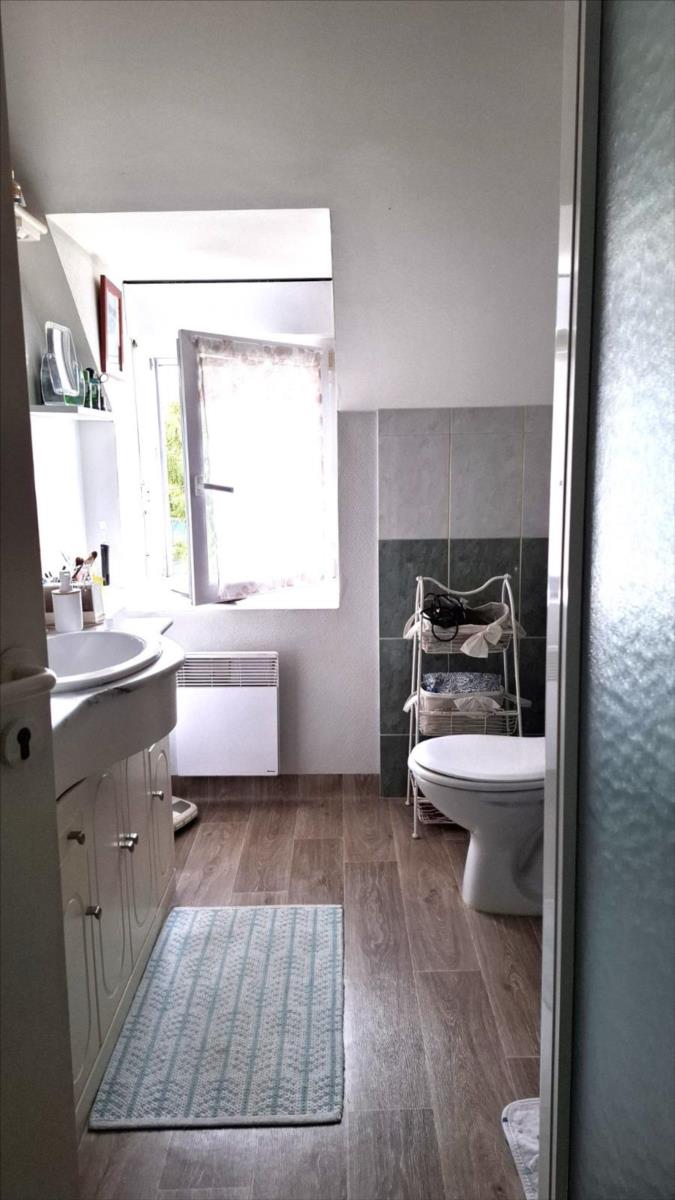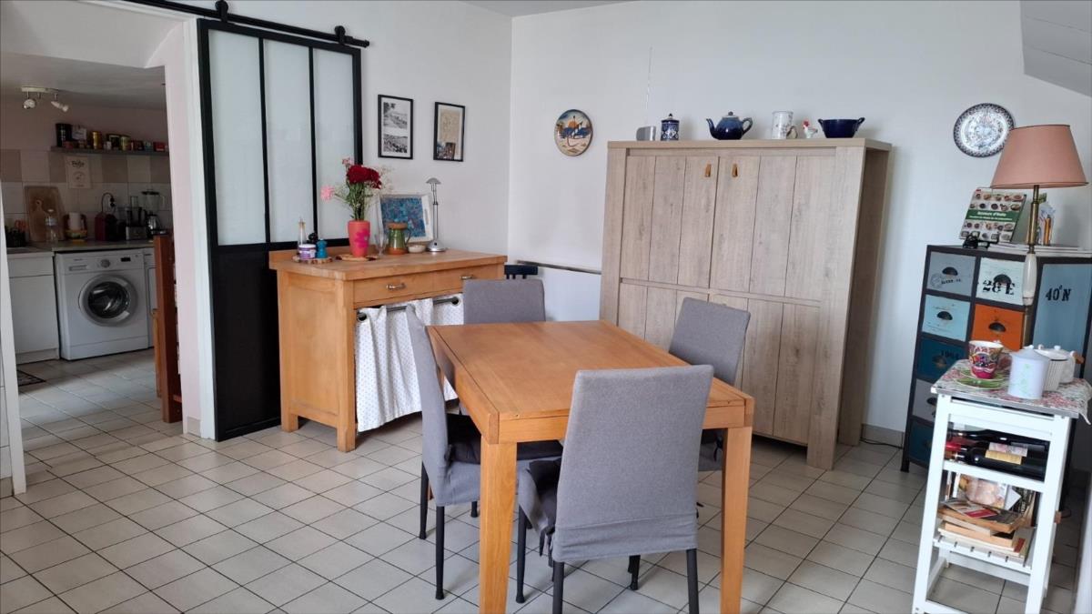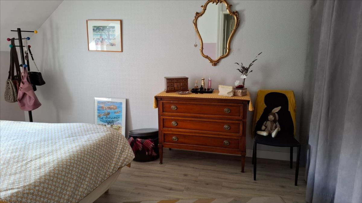 Une charmante maison en pierre rénovée, située en campagne à environ 6 km des commerces de Quettehou et à 6 km de la mer.Elle est composée de :- au rez-de-chaussée : salon-séjour avec cheminée poêle à bois, cuisine aménagée et équipée avec espace repas, arrière cuisine-buanderie, WC.- à l'étage : palier, deux chambres, salle d'eau avec WC. Une troisième chambre avec escalier indépendant.En prolongement, une ancienne habitation d'environ 15 m² au sol offrant des possibilités d'extension ou de développement.Agréable jardin clôturé devant exposé au Sud.Grande dépendance/garage à la suite d'environ 65 m² au sol.