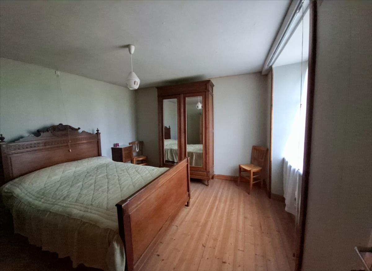 au rez-de-chaussée : séjour avec poêle à fioul, cuisine, dégagement - couloir, WC,