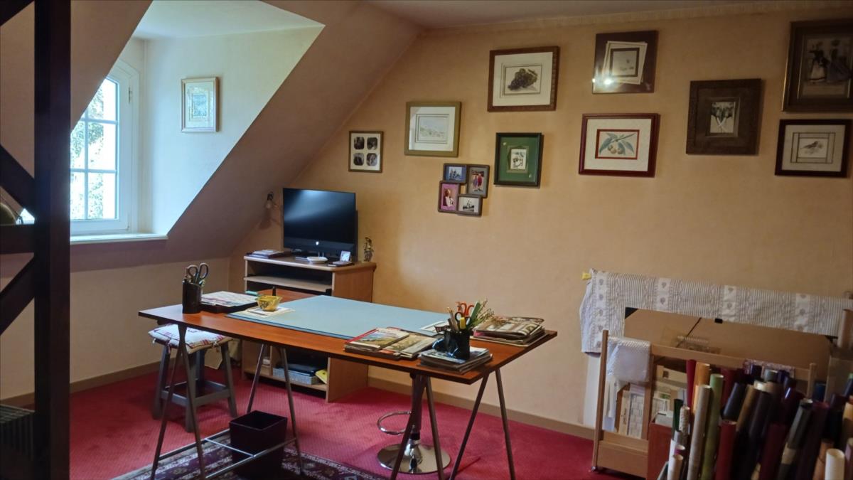 - à l'étage : pièce palière, deux chambres, salle d'eau avec WC, grenier offrant des possibilités pour créer une chambre supplémentaire.