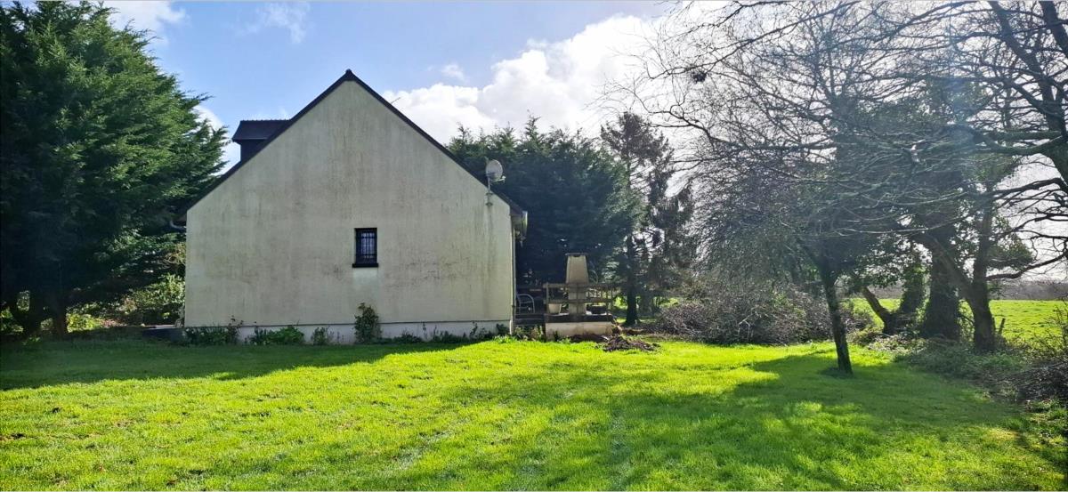 Terrasse sur l'arrière de la maison avec un cellier en-dessous. Cour devant.