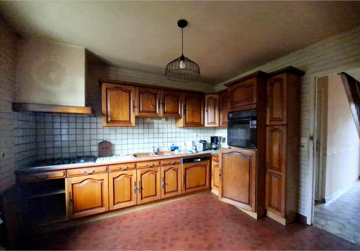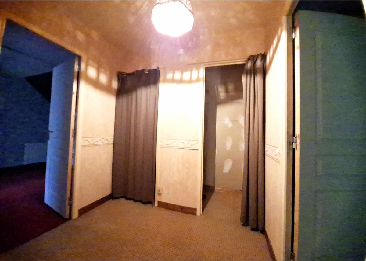 - Rez-de-chaussée : entrée, cuisine aménagée, salon-séjour avec cheminée foyer ouvert, couloir desservant une chambre, salle de bains et WC indépendants.