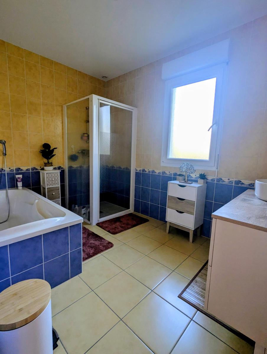 La partie nuit se compose d’un couloir desservant trois chambres dotées de rangements intégrés, ainsi qu’une salle de bains élégante avec baignoire, douche, meuble contemporain et vasque. WC indépendants.