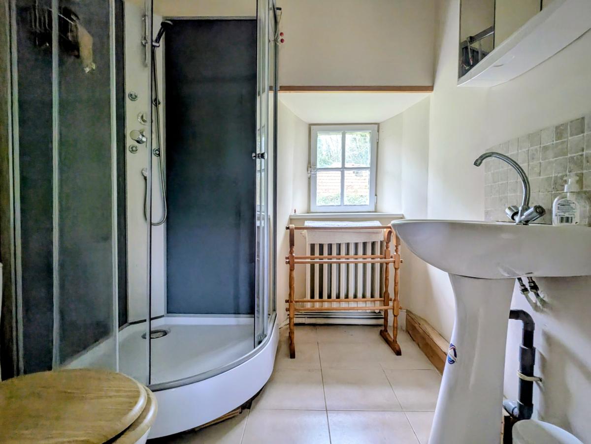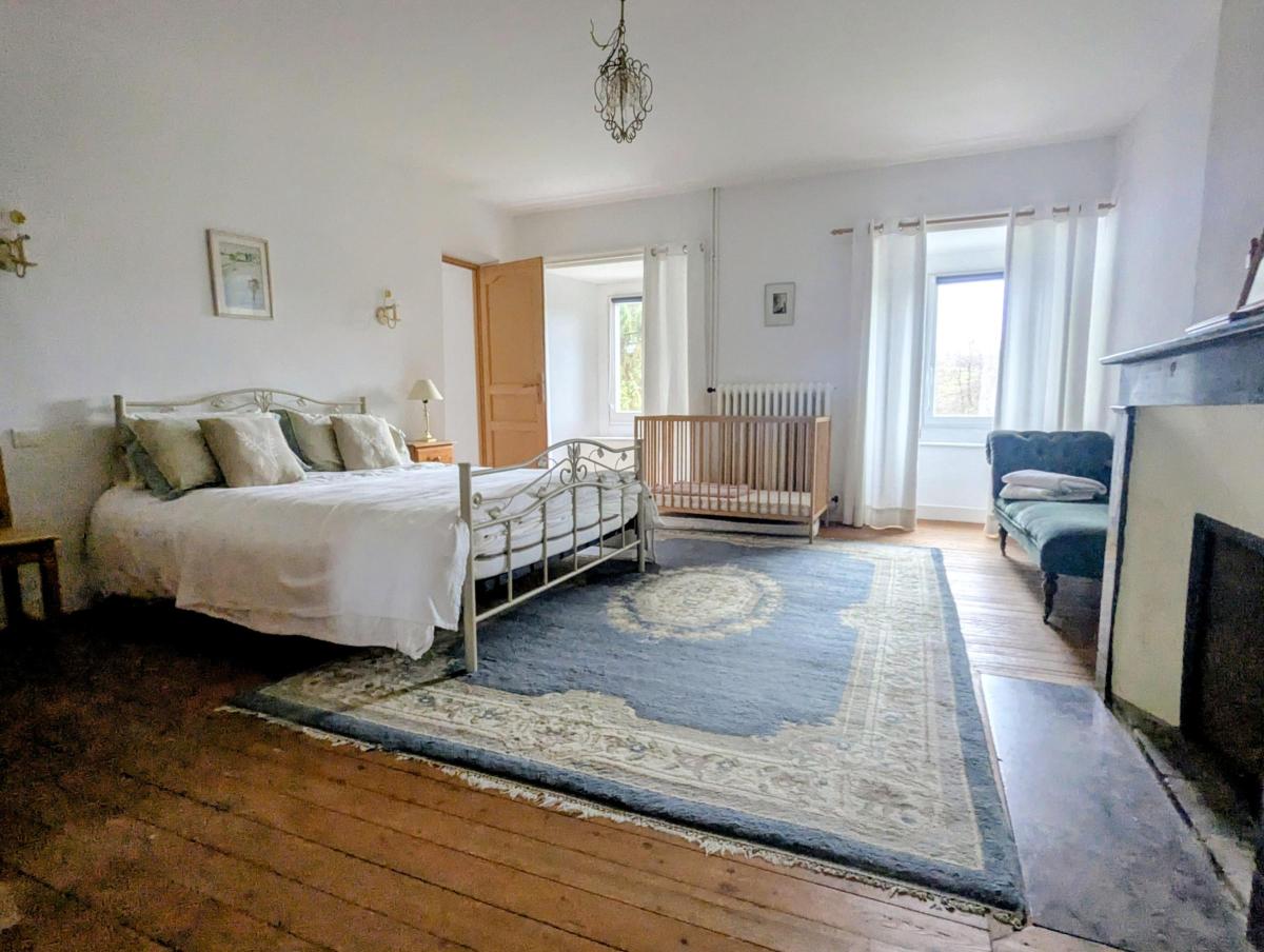 🔹 Étage : 5 chambres parquetées, dont certaines avec placards ou cheminée ancienne, 2 salles d’eau avec WC, petite pièce polyvalente, accès grenier.