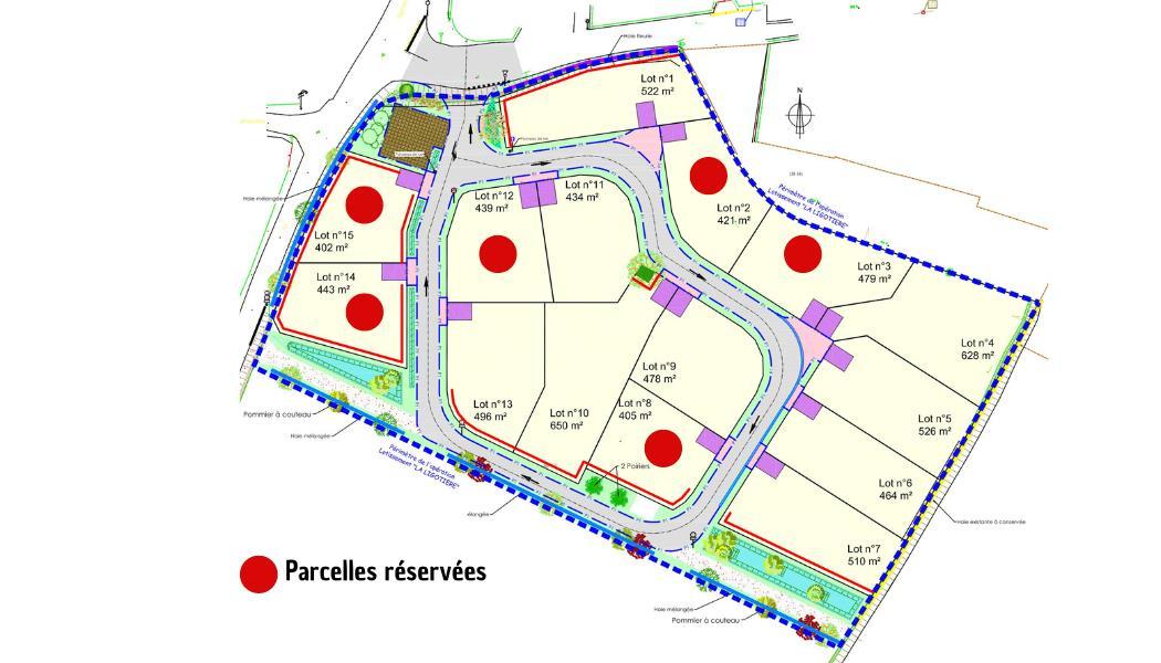 Proche centre ville de VILLEDIEU LES POELES ROUFFIGNY, Lotissement de 15 parcelles viabilisés. Déjà des parcelles de réservées. Surface : entre 419 m² et 650 m² Prix entre 32.160 € et 49.633,60 € (honoraires inclus) Les informations sur les risques auxquels ce bien est exposé sont disponibles sur le site Géorisques : www. georisques. gouv. fr