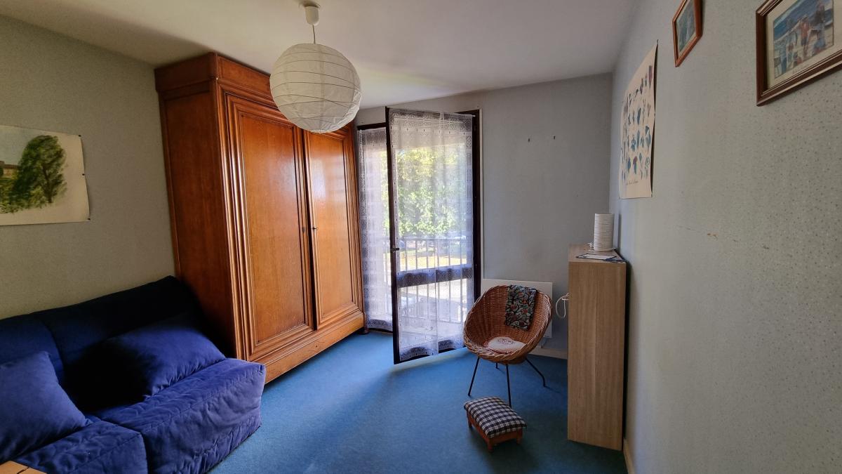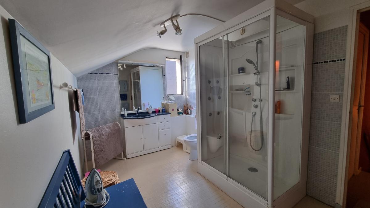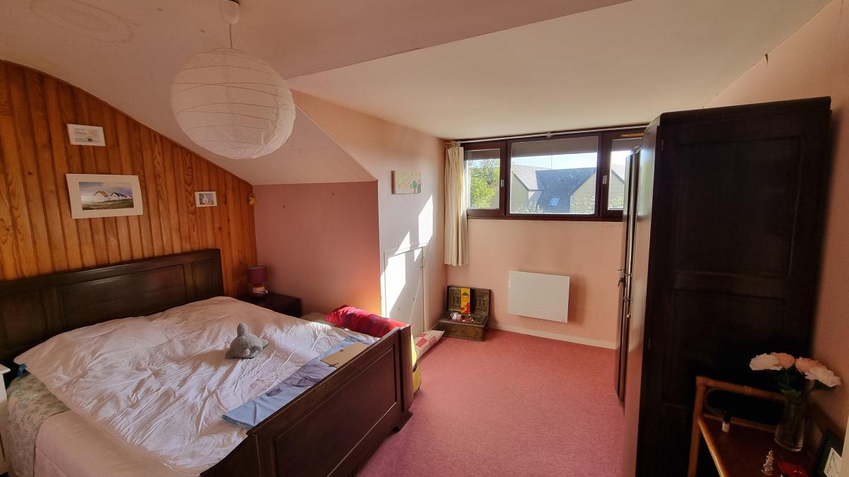 A l'étage : palier desservant trois chambres dont une avec placards, une salle d'eau avec wc.