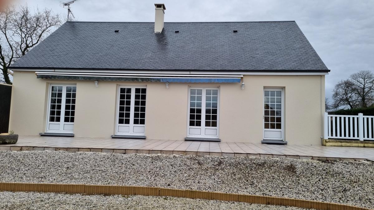 Dans le bourg de Saint-Jean-Des-Champs, un pavillon de plain-pied sur sous-sol. Sur le terrain un grand hangar de stockage d'environ 100 m².