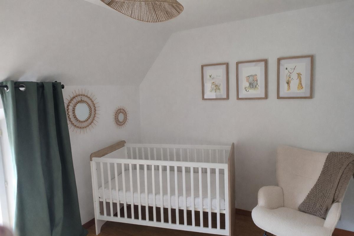 A l'étage : couloir desservant trois chambres, salle de bains, wc avec lave-mains.