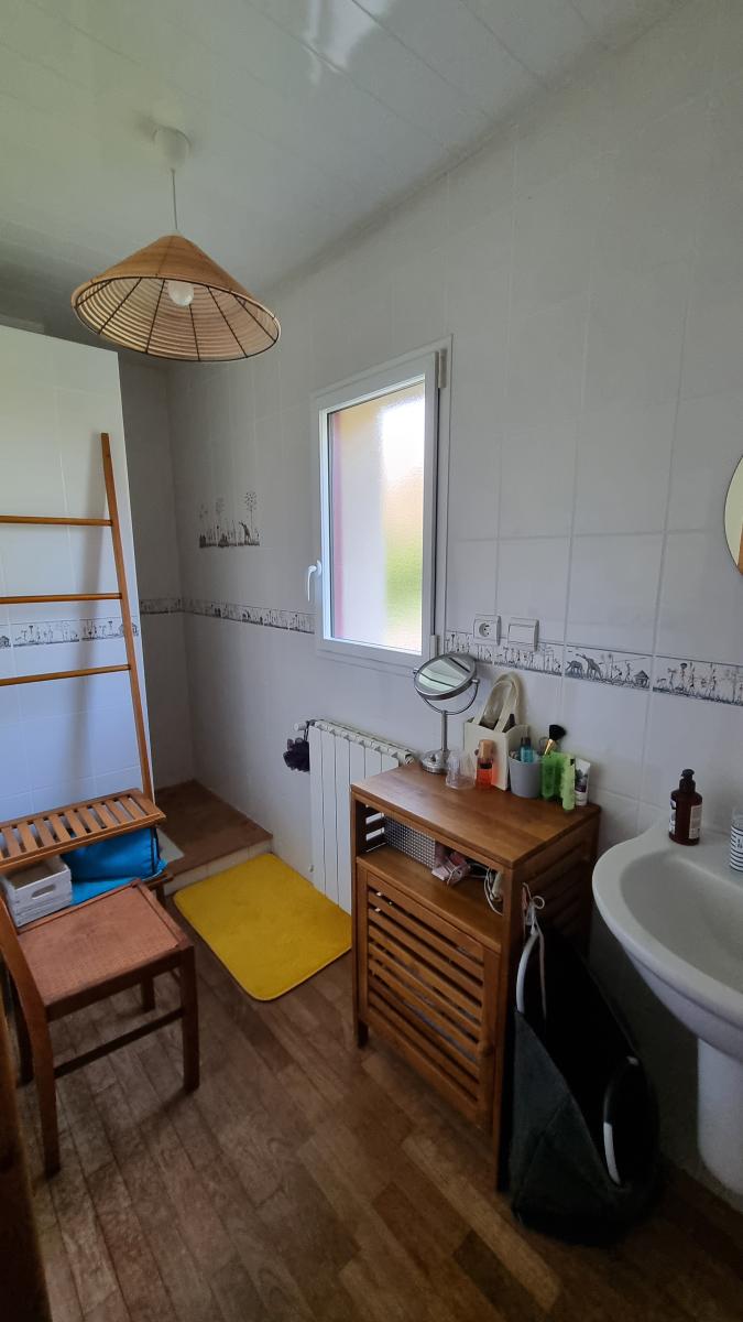 Au rez-de-chaussée : Entrée avec dressing, un grand séjour/salon avec poêle à pellets et accès à la terrasse plein sud, une cuisine aménagée et équipée, arrière-cuisine/buanderie, une chambre avec salle d'eau, un wc avec lave-mains.