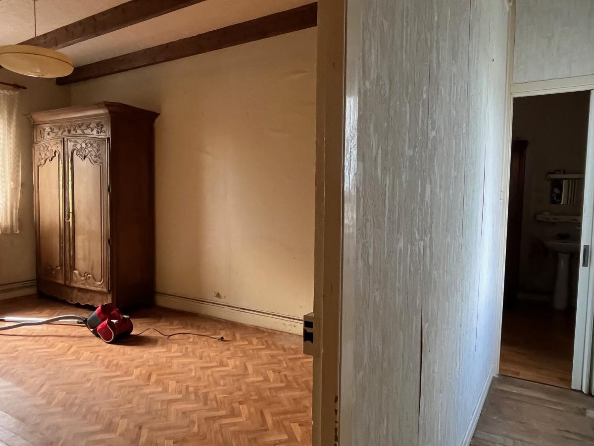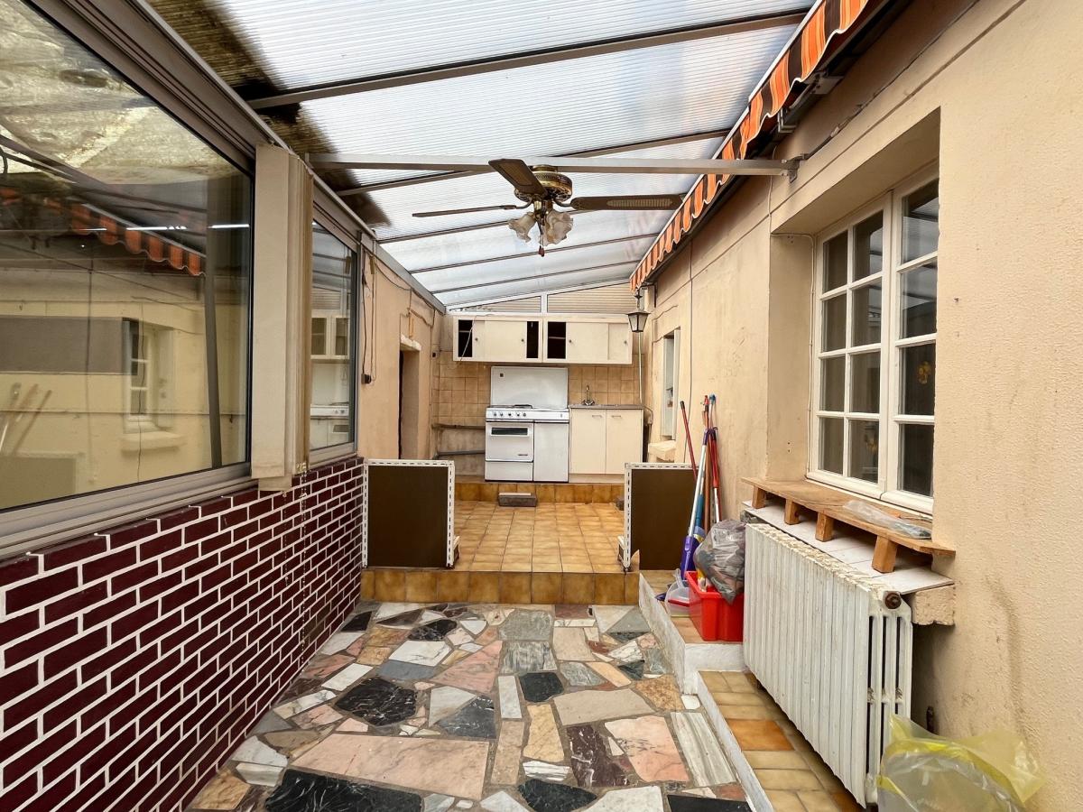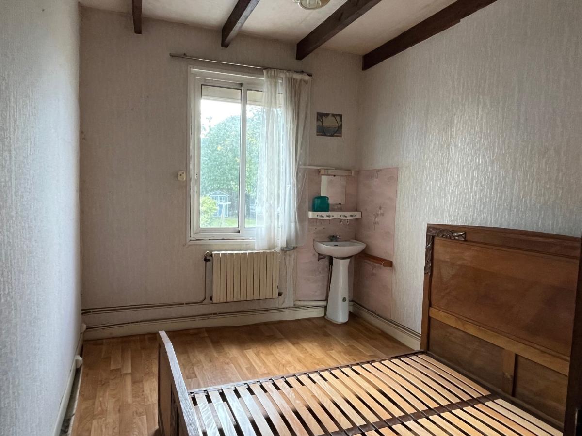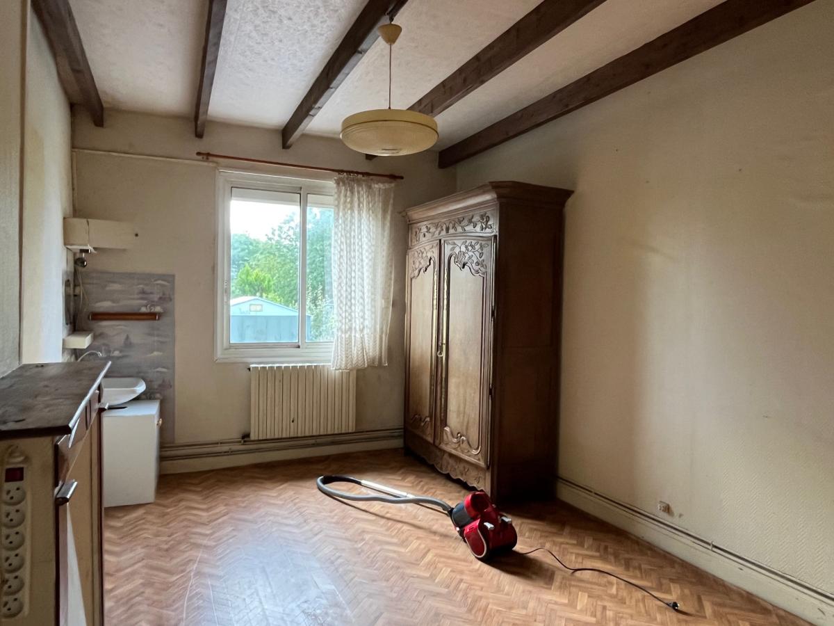 Une maison à rénover, d'une surface habitable d'environ 108 m², comprenant : cuisine, salle à manger, pièce à la suite, salle d'eau avec wc. A l'étage : 3 chambres, autre pièce. Véranda, appentis, atelier, cave, garage, wc. Cour et jardin, cabanon de jardin. Le tout sur un terrain 1115 m². Honoraires de négociation à charge vendeur