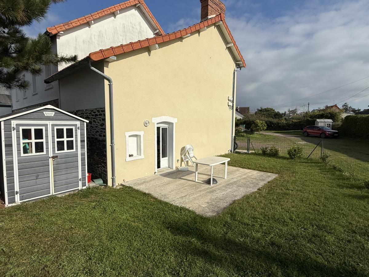 Jardin privatif 139 m² avec terrasse et cabanon.