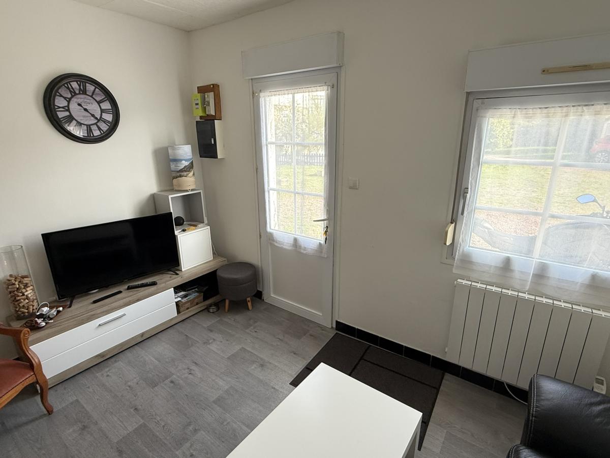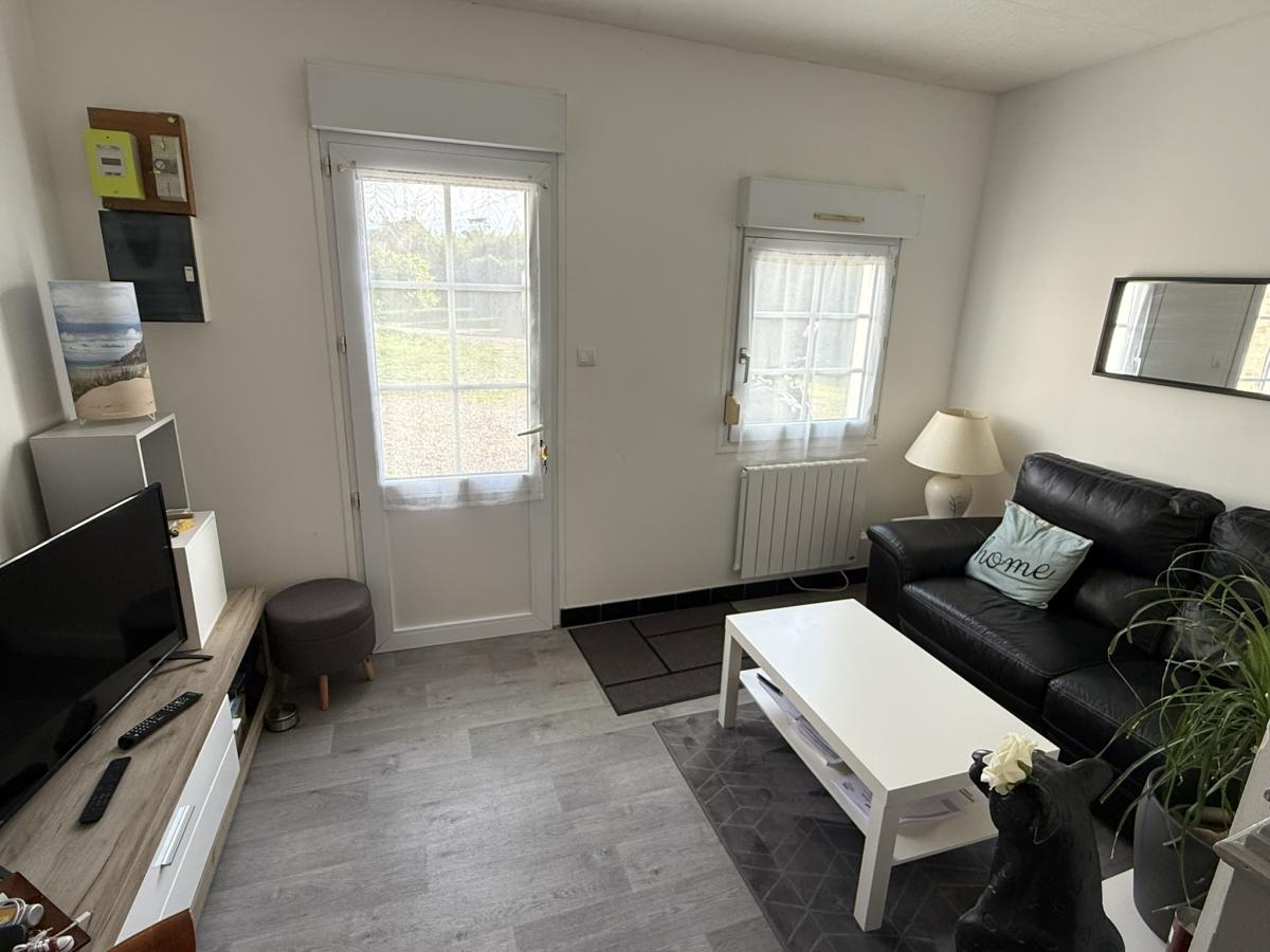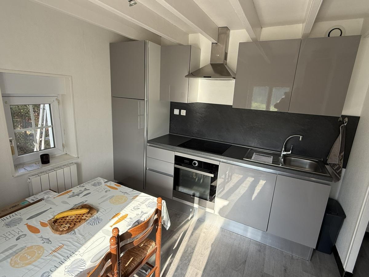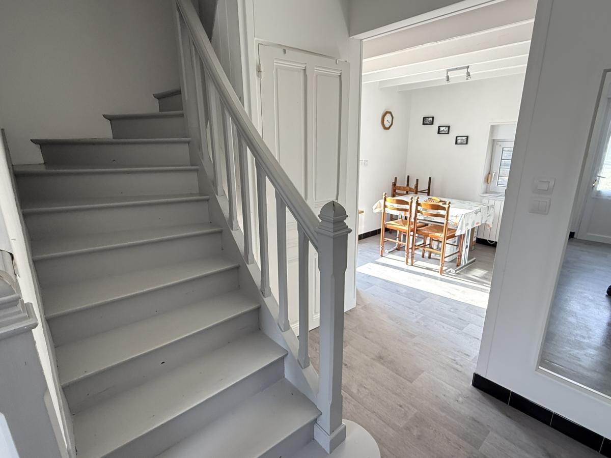 - Au rez de chaussée: séjour avec cuisine ouverte équipée, débarras.