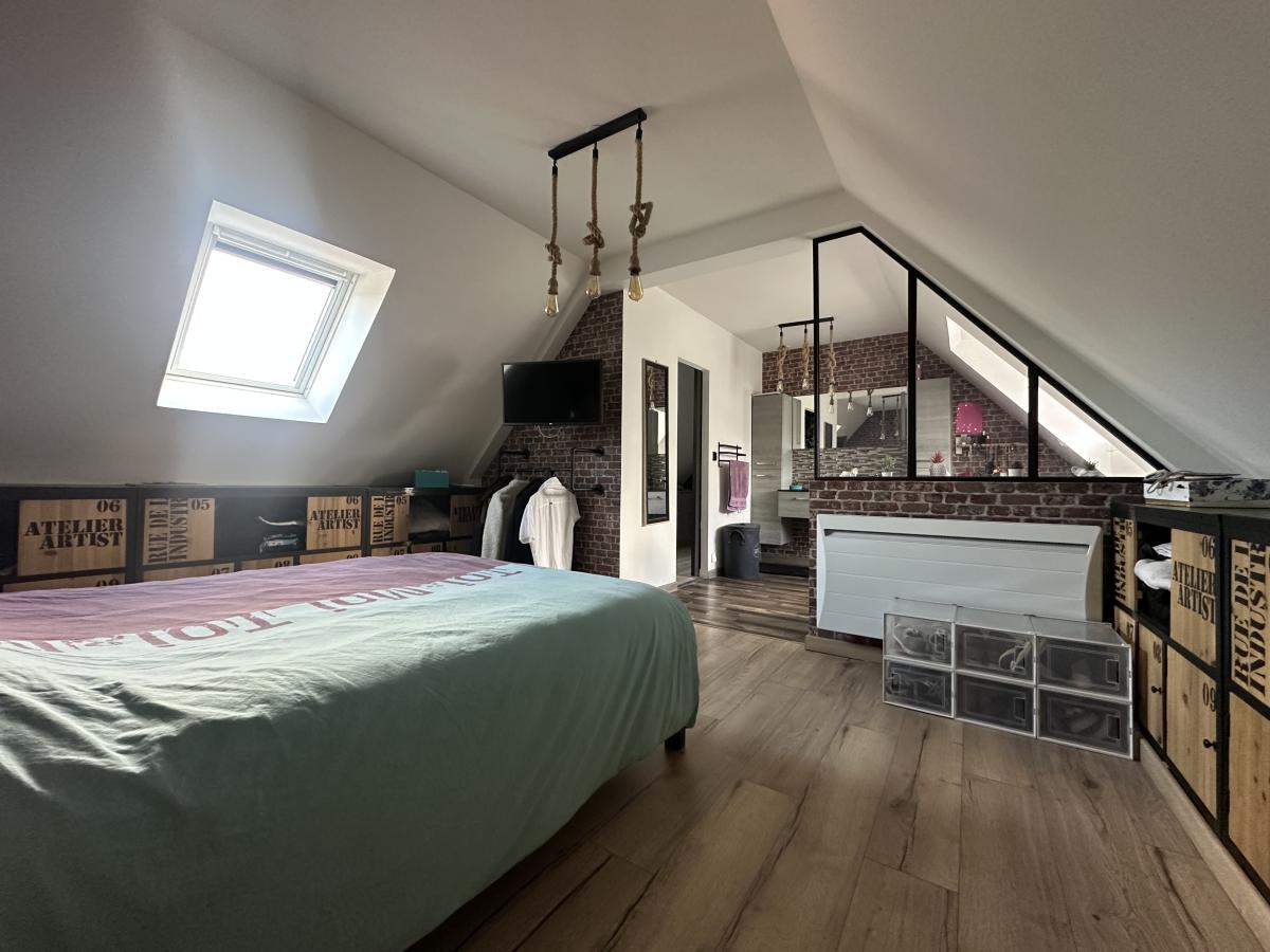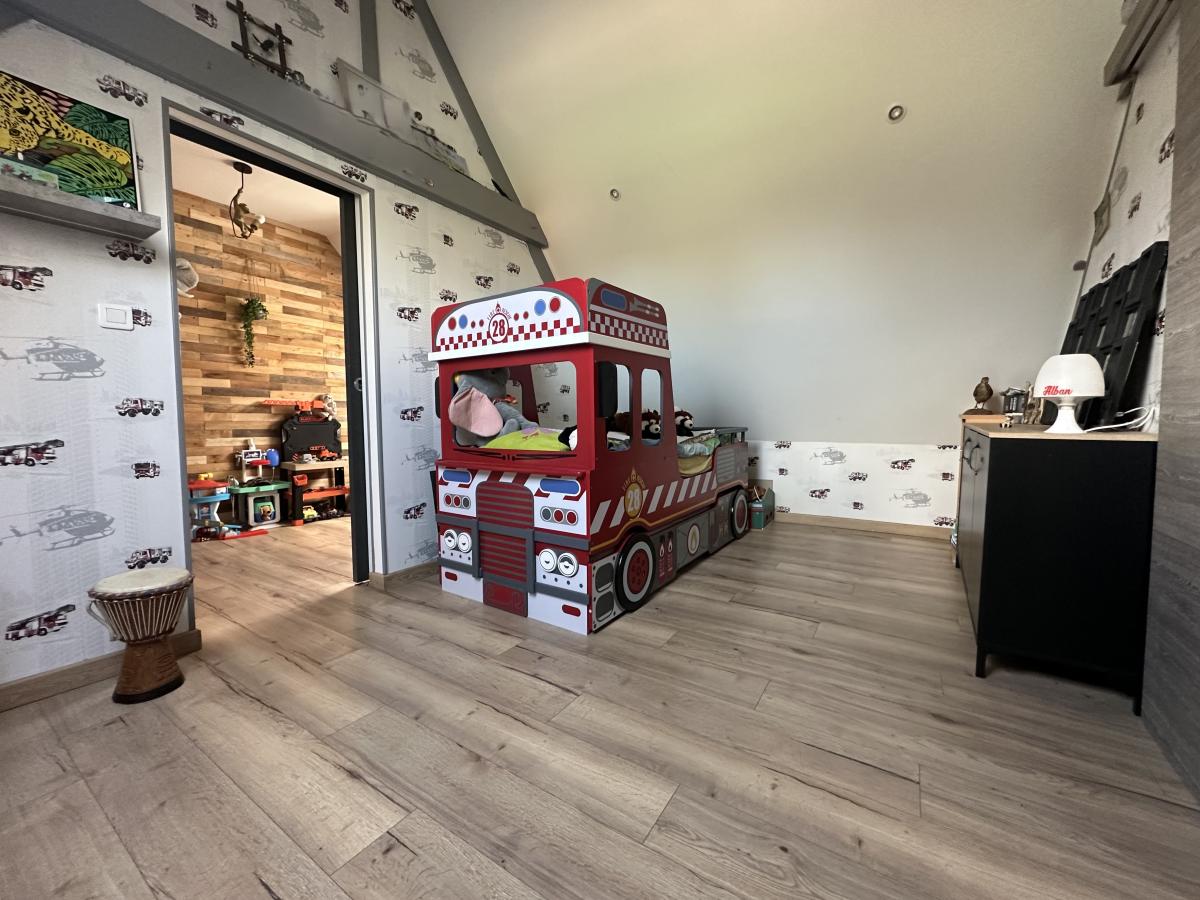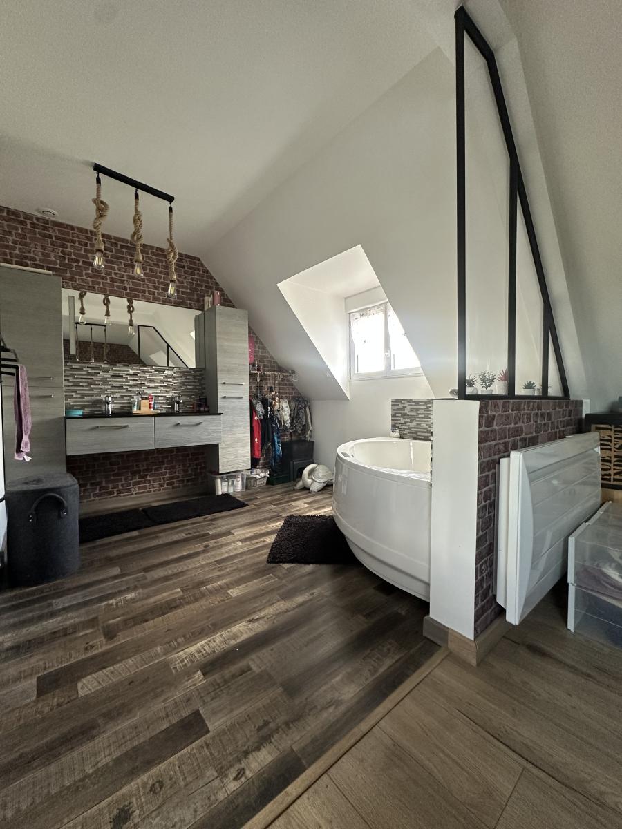 Au premier étage : Palier avec nombreux rangements et placard, une belle suite parentale avec chambre et salle de bains privative (baignoire balnéo).