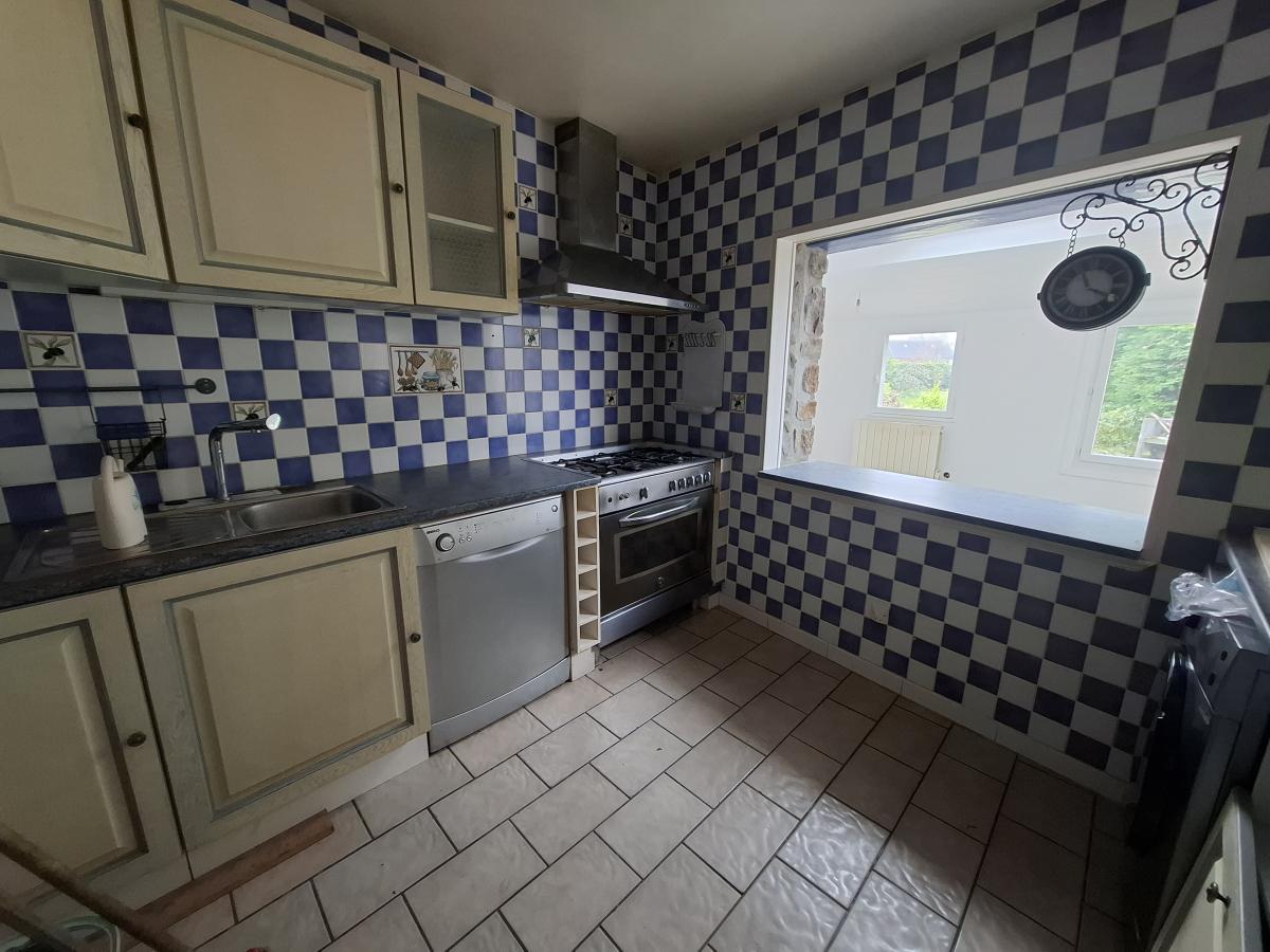 Au rez-de-chaussée : entrée avec placard, salon avec cheminée insert, dégagement, cuisine ouverte sur séjour en extension sur jardin, toilette, salle de bains.