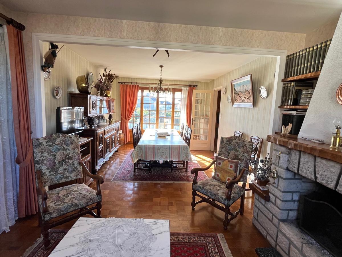 Maison d'habitation construite en 1964, en très bon état, comprenant : Rez de jardin : garage, buanderie, atelier, cave, chaufferie Rez de chaussée surélevé : entrée, séjour parquetée avec cheminée 27 m² donnant sur grande terrasse, cuisine aménagée 10 m², trois chambres parquetées 9 m², 10 m² et 11,5 m², salle de douches, wc, Grenier sur le dessus accessible par un escalier escamotable, Terrain clos 605 m² - Chauffage fuel - Fenêtres bois simple vitrage Montant estimé des dépenses annuelles d'énergie pour un usage standard entre 3980 € et 5450 € : prix moyens des énergies indexés au 01/01/2021 (abonnement compris) Logement à consommation énergétique excessive Les informations sur les risques auxquels ce bien est exposé sont disponibles sur le site Géorisques : www. georisques. gouv. fr