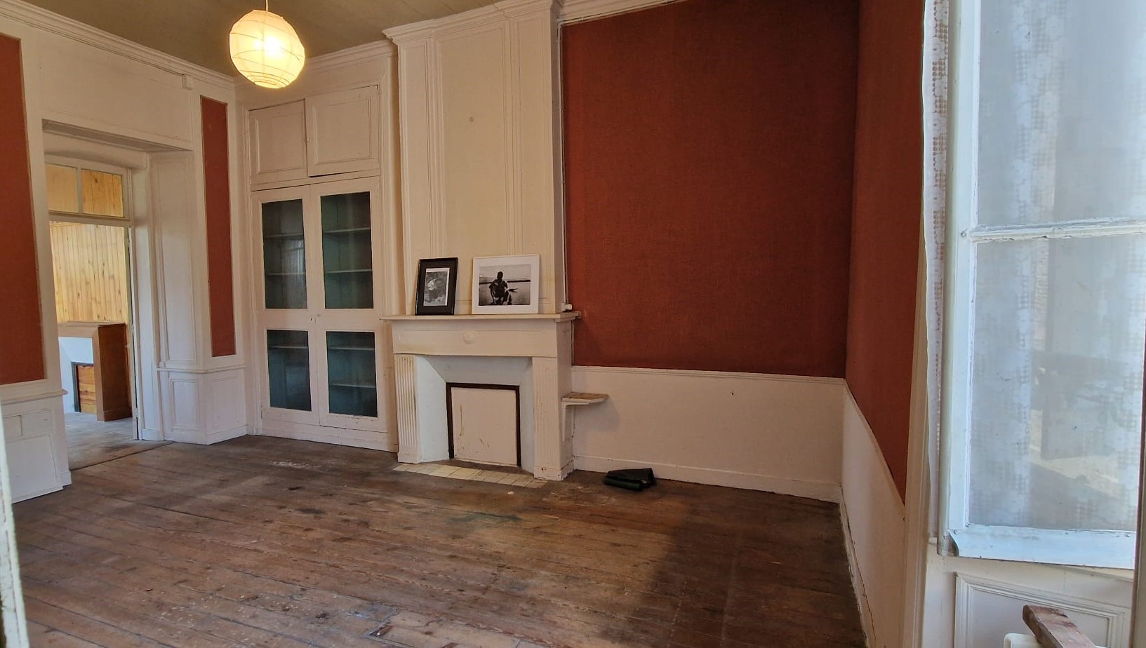 - rez-de-chaussée : entrée rue, entrée jardin, salle avec cheminée, coin buanderie, salle de bains, WC, salon avec cheminée, couloir, placards, chambre, dressing, bureau.
