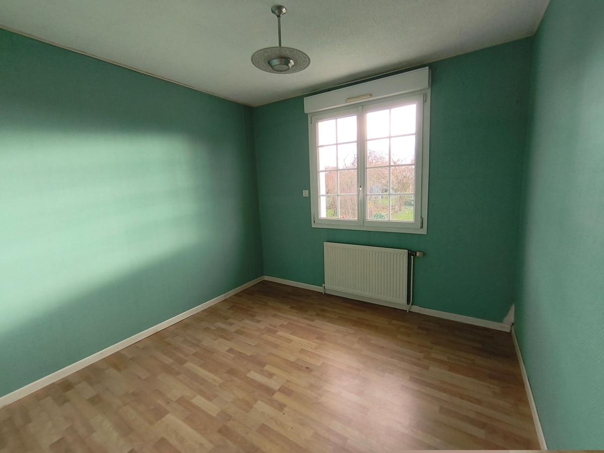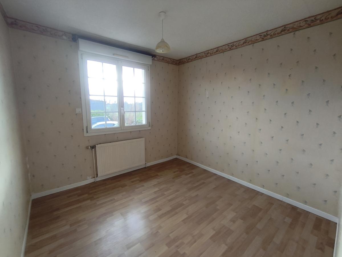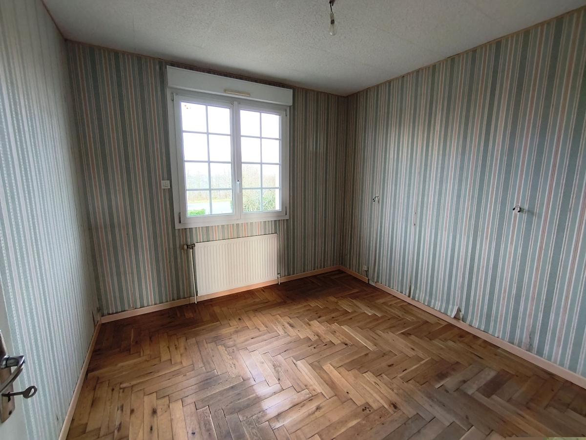 A proximité de Domfront, pavillon jumelé surélevé de 4 pièces principales avec hangar, sur env. 1ha 09 de terrain.